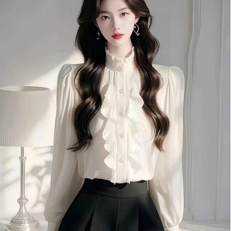 French Chic Lace Splicing Long-Sleeved Shirt Early Spring Super Good Single-Dnecked Shirt Temperament Blouse Women's Clothing HZ1208