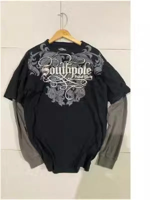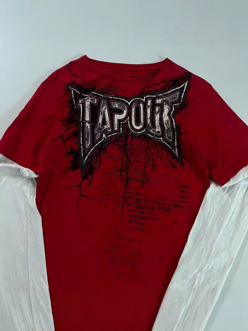 New Street Trendy TAPOUT Printed T-Shirt Fake Two-Piece Blouse Casual Hip-Hop Long-Sleeved T-Shirt HZ1208