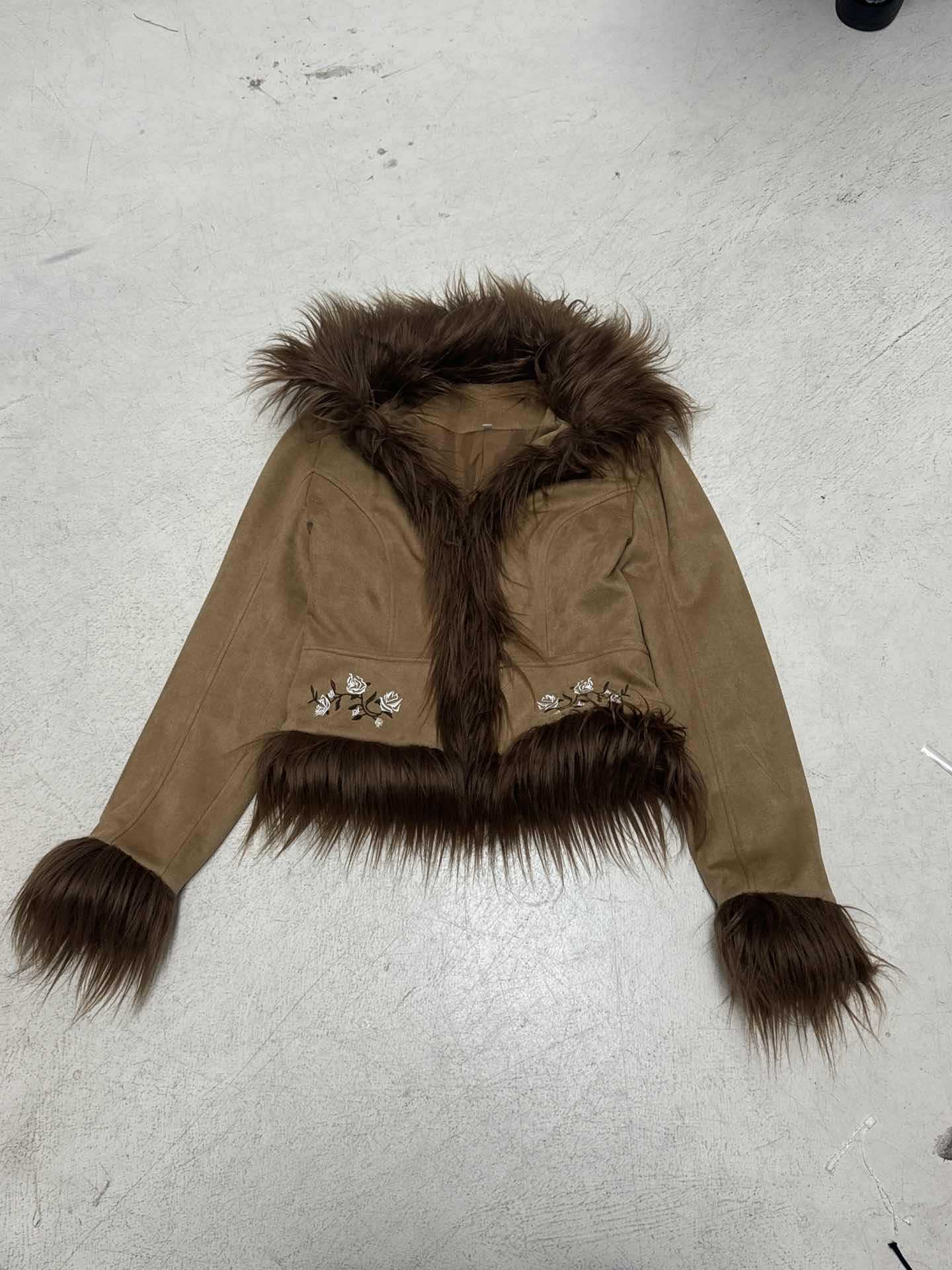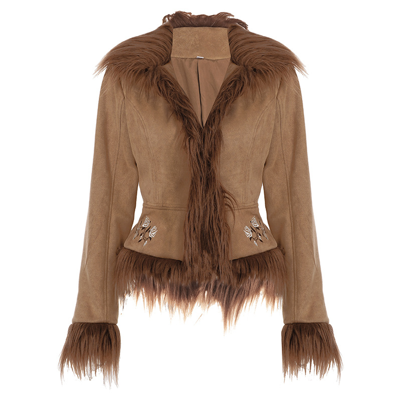 Street Retro Millard Hair Collar Flower Embroidery Short Warm Coat Thairy Blouse HZ1220