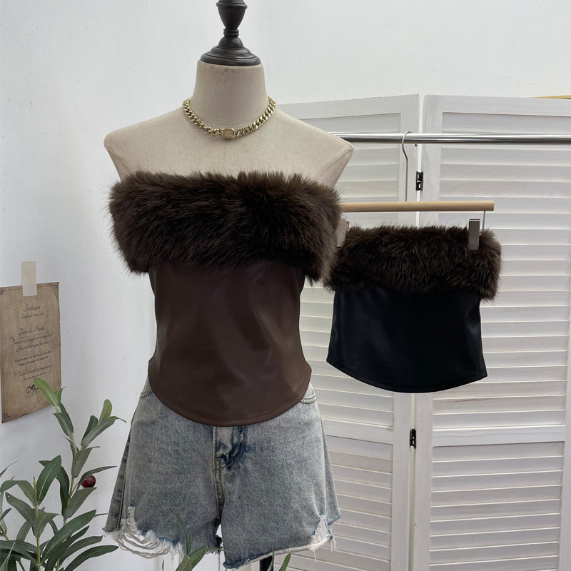 Beware Of Sexy Folded Short Bra Vest Drawstring Low-Rise Shorts Leopard Hair Spliced Two Sets HZ1220