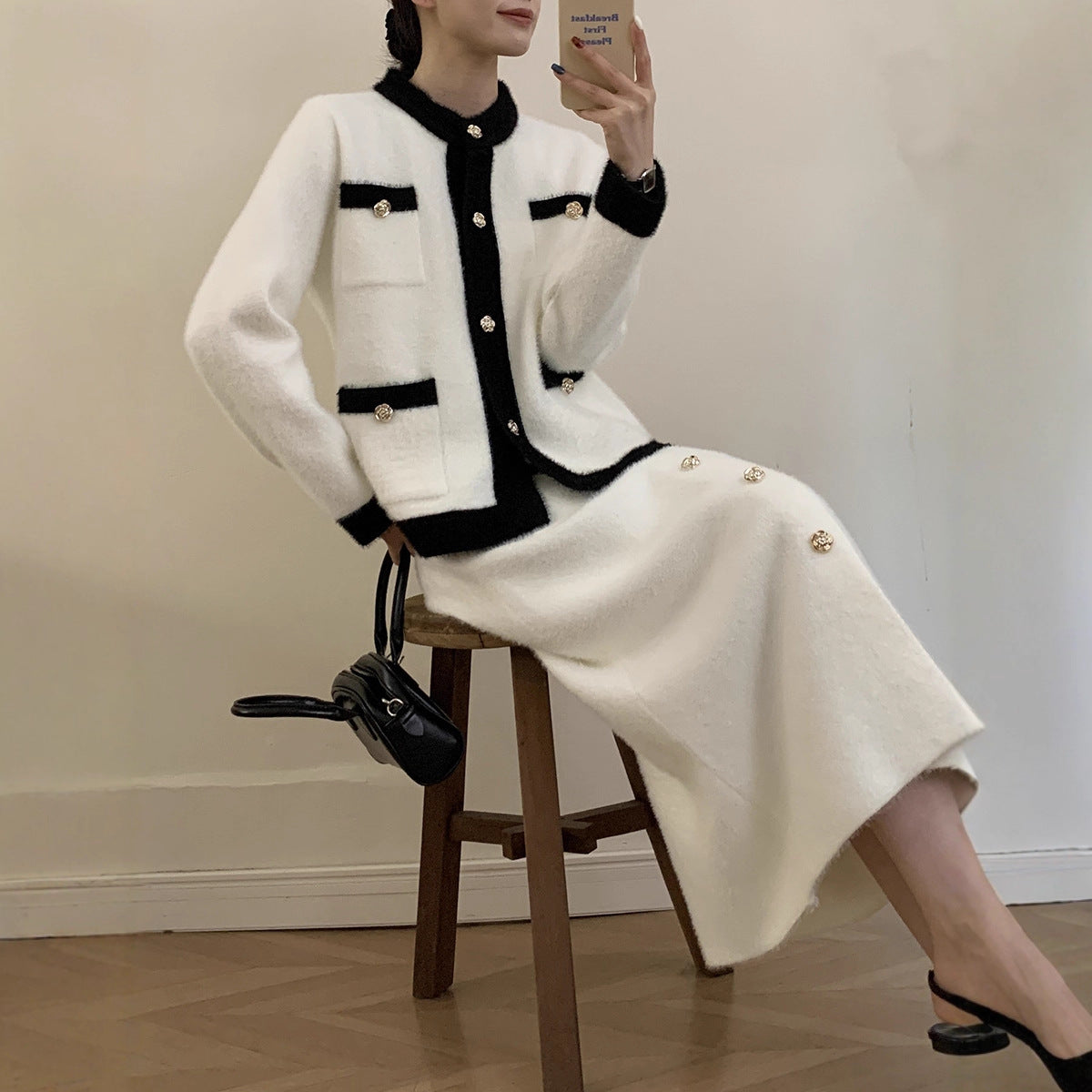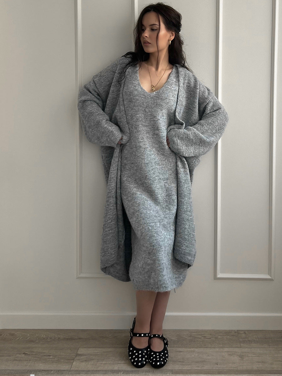 2025 Autumn And Winter Hot Sweater Set Women Loose Long Version Thicker Cardigan + V Collar Vest Skirt HZ1208
