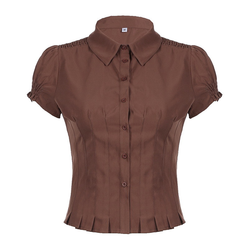 2025 Sweet Niche Wind Collar Bubble Sleeve Shirt Design Pressure Folding Waist Thin Commuter Cardigan T-Shirt Girl HZ1220