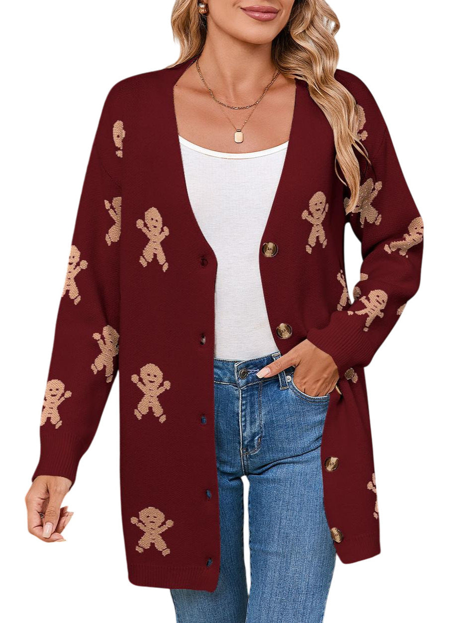 Autumn And Winter New Sweater Female Christmas Cartoon Embroidered Long Knitted Cardigan Jacket HZ1208