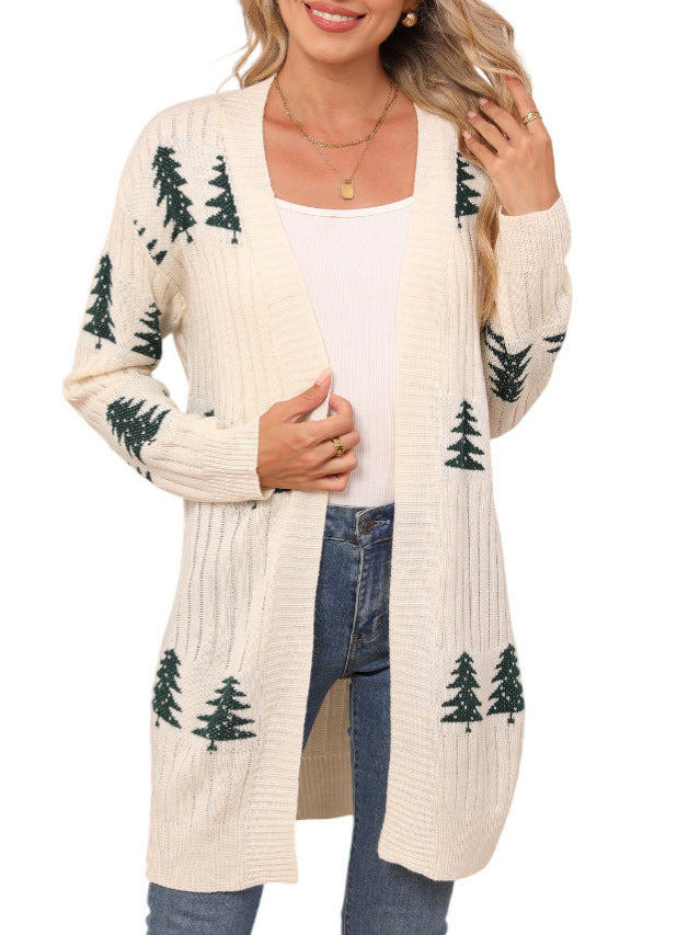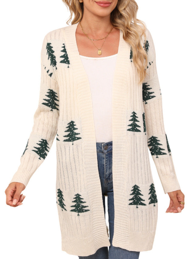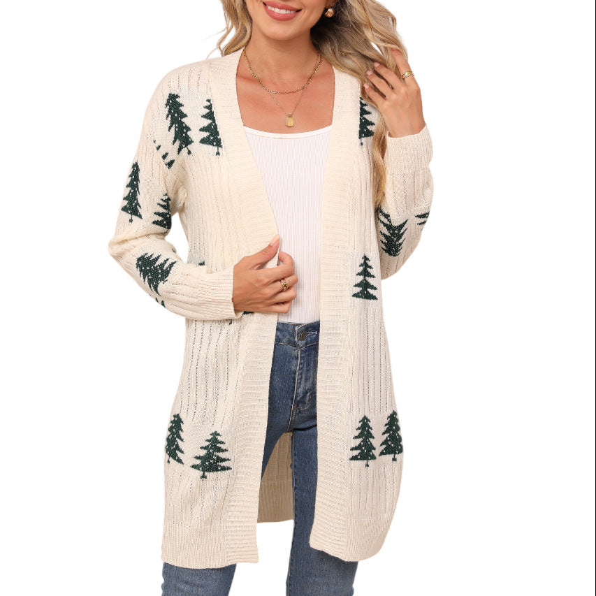 Autumn And Winter New Sweater Women's Knitted Loose Christmas Cedar Embroidered Cardigan Jacket HZ1208