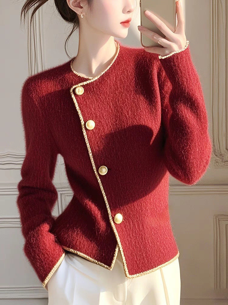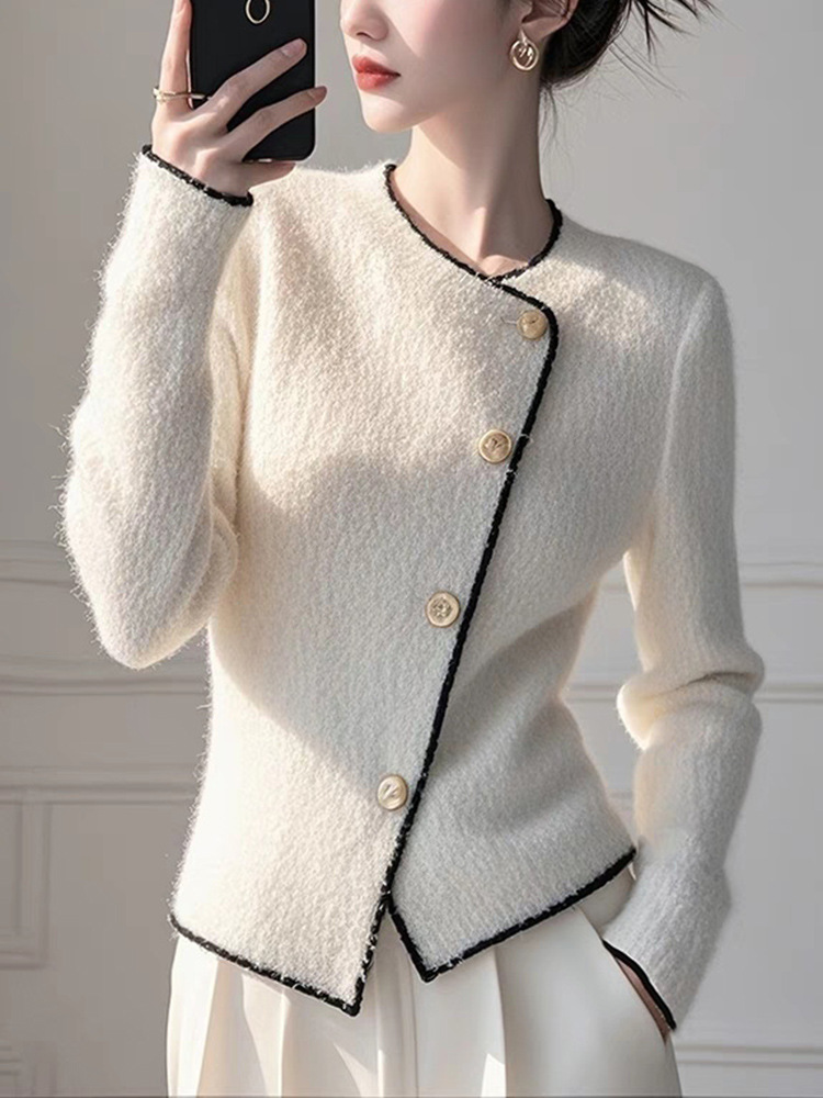 Korean Version Of The Round-Neck Simple Cardigan Sweater Coat Women Autumn 2025 Autumn And Winter Dress New Temperament Reduction Lady Top HZ1208