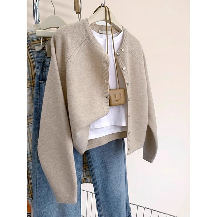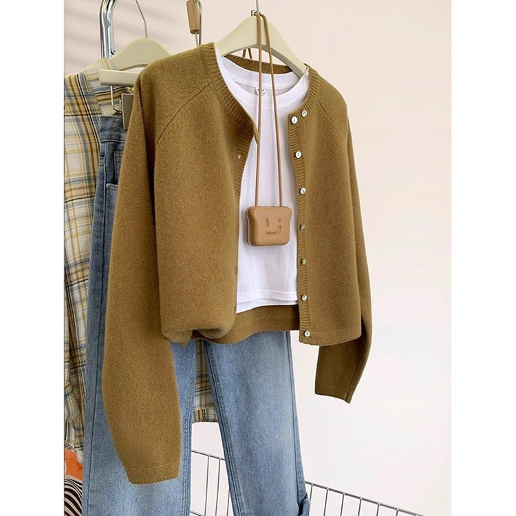 Soft Glutinous Solid Color Simple Short Design Knitted Cardigan Women 2025 Autumn And Winter Small Man Top Sweater Jacket HZ1208