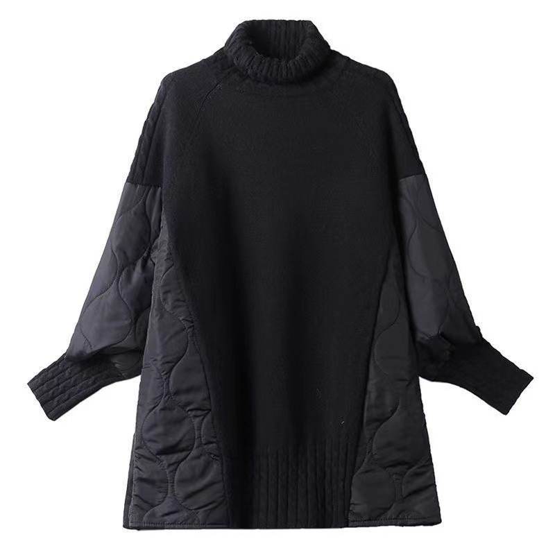 2025 Autumn And Winter New Ocean Collar Splicing Sweater Female Korean Version Of The Fashion Loose Warm Coat Design Sense Niche HZ1220