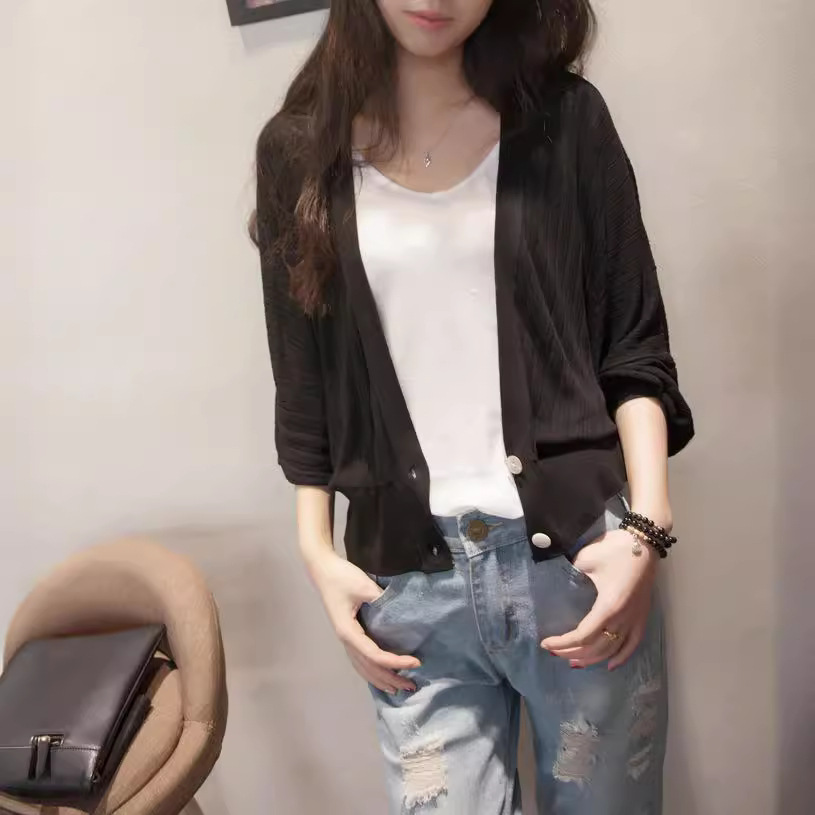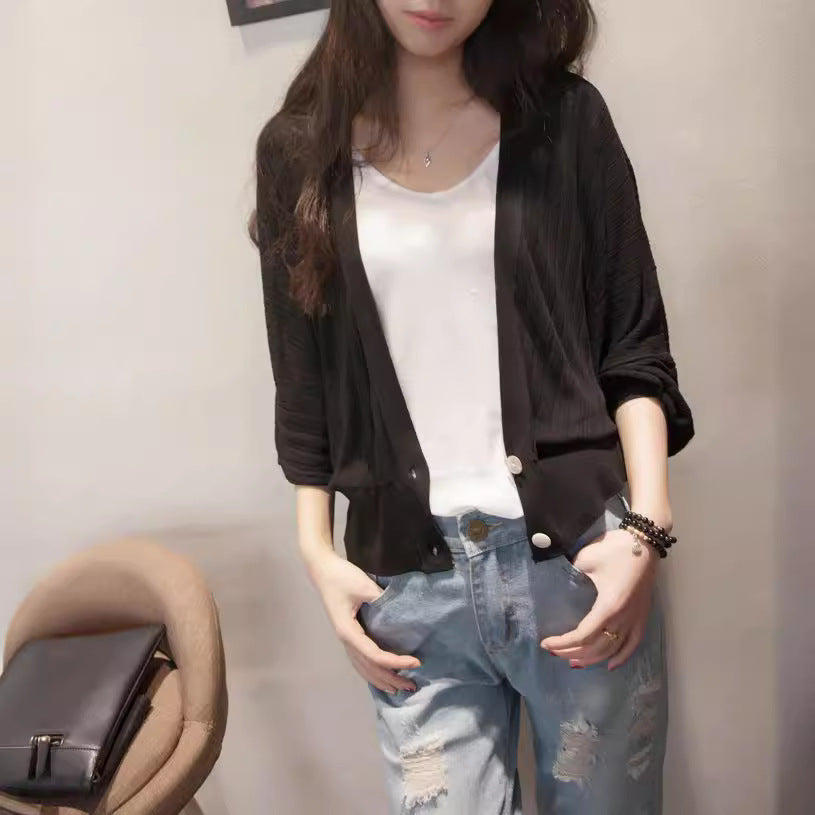 Japan And South Korea's New Lantern Sleeve Knitted Shirt Women Wearing V-Neck Loose Sunscreen Air-Conditioning Shirt Shawl Coat HZ1220