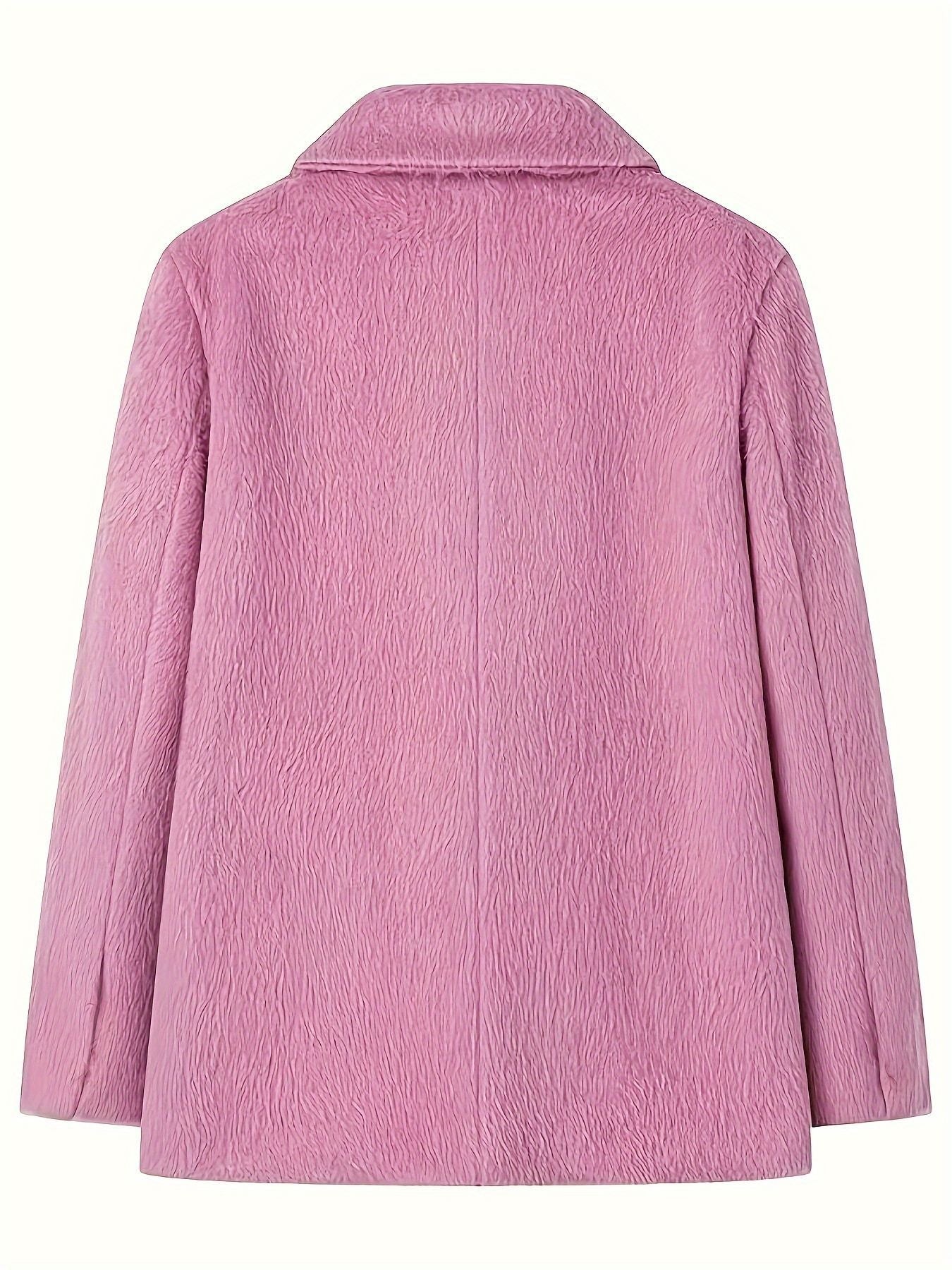 Women's Fashion Collar Plush Coat Women's Single Row Buckle Long-Sleeved Elegant Wind Coat Suit Top HZ1220