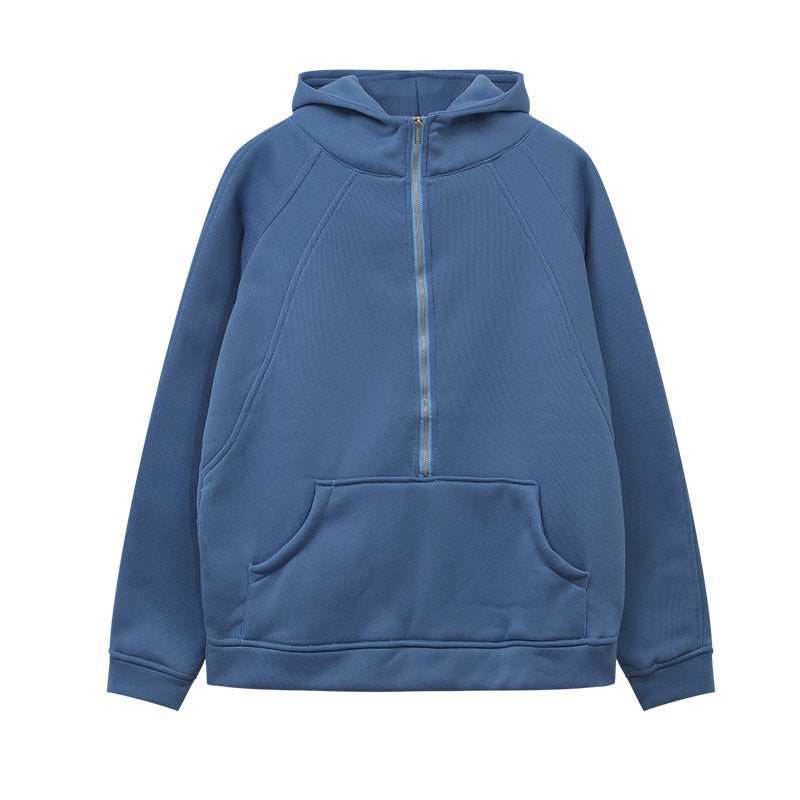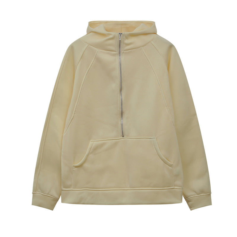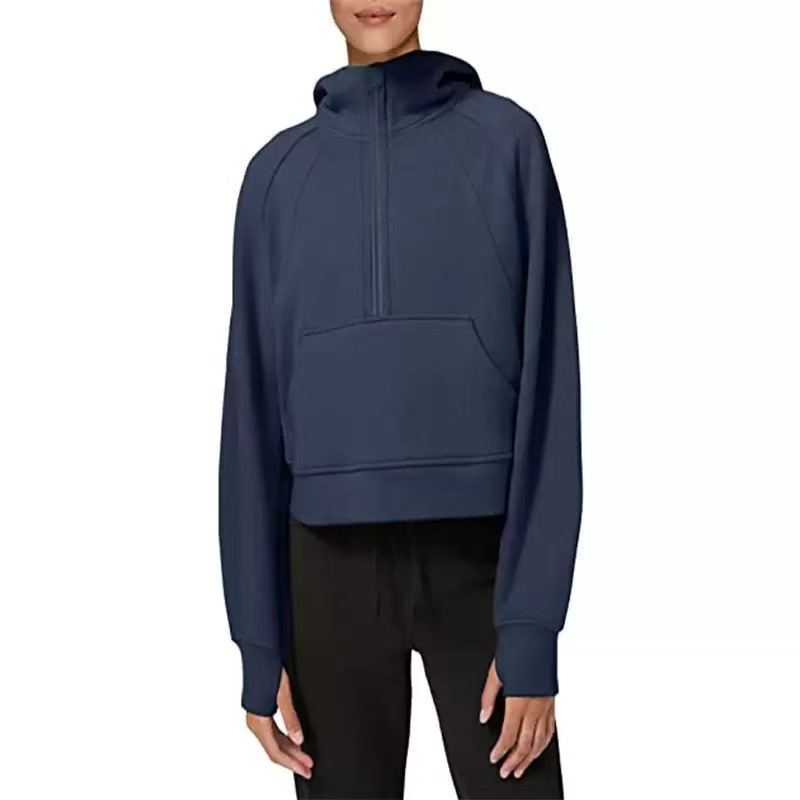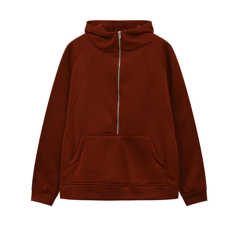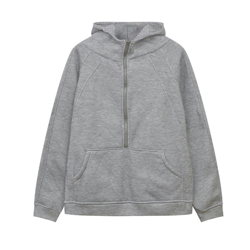 2025 Autumn And Winter New Fashion Leisure Sports Semi-Zip Hooded Short Plus Velvet Wear HZ1220
