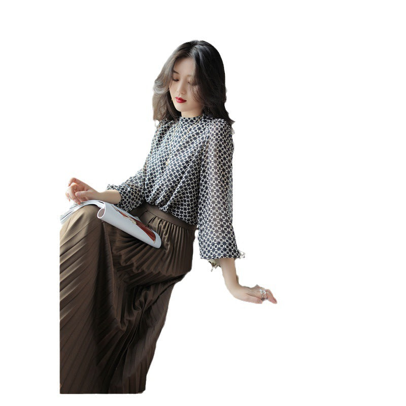 Genre Wearing Beauty Thin Paper People Print Half-High Collar Double-Layer Heavy Joe Its Simulation Silk Shirt Woman HZ1220