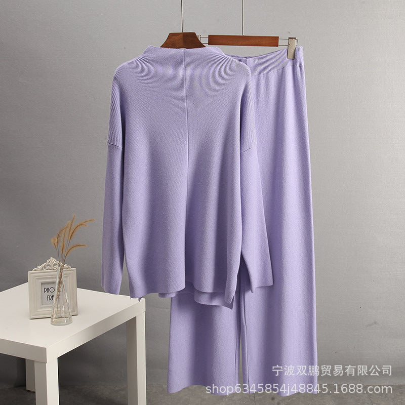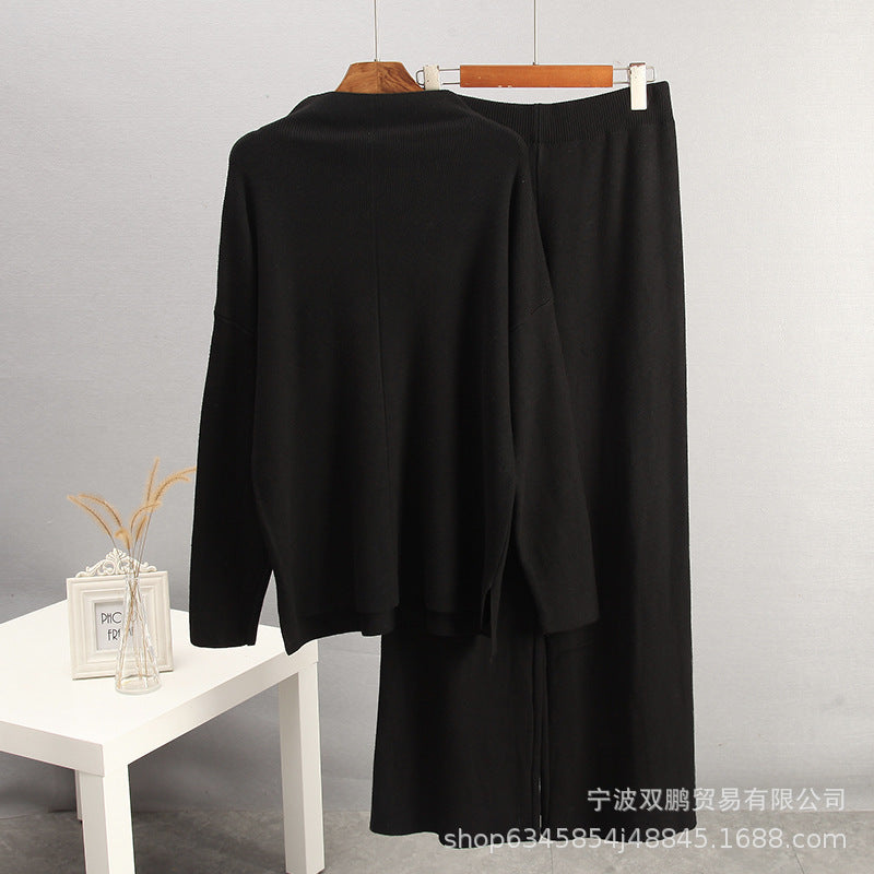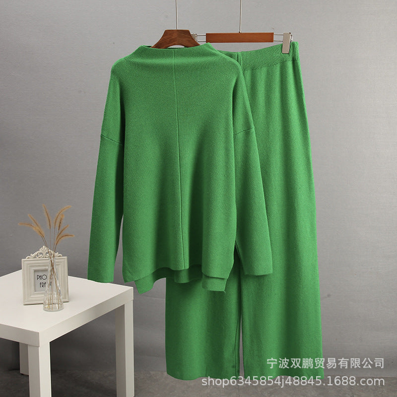 2025 Hot Sales Solid-Color Suit Women Irregular Open Fork Top + Wide Leg Pants Leisure Loose New HZ1208