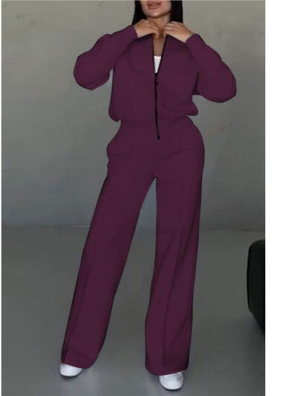 2025 New Autumn And Winter Women's Casual Zipper Jacket Wide Leg Pants Fashion Set HZ1208