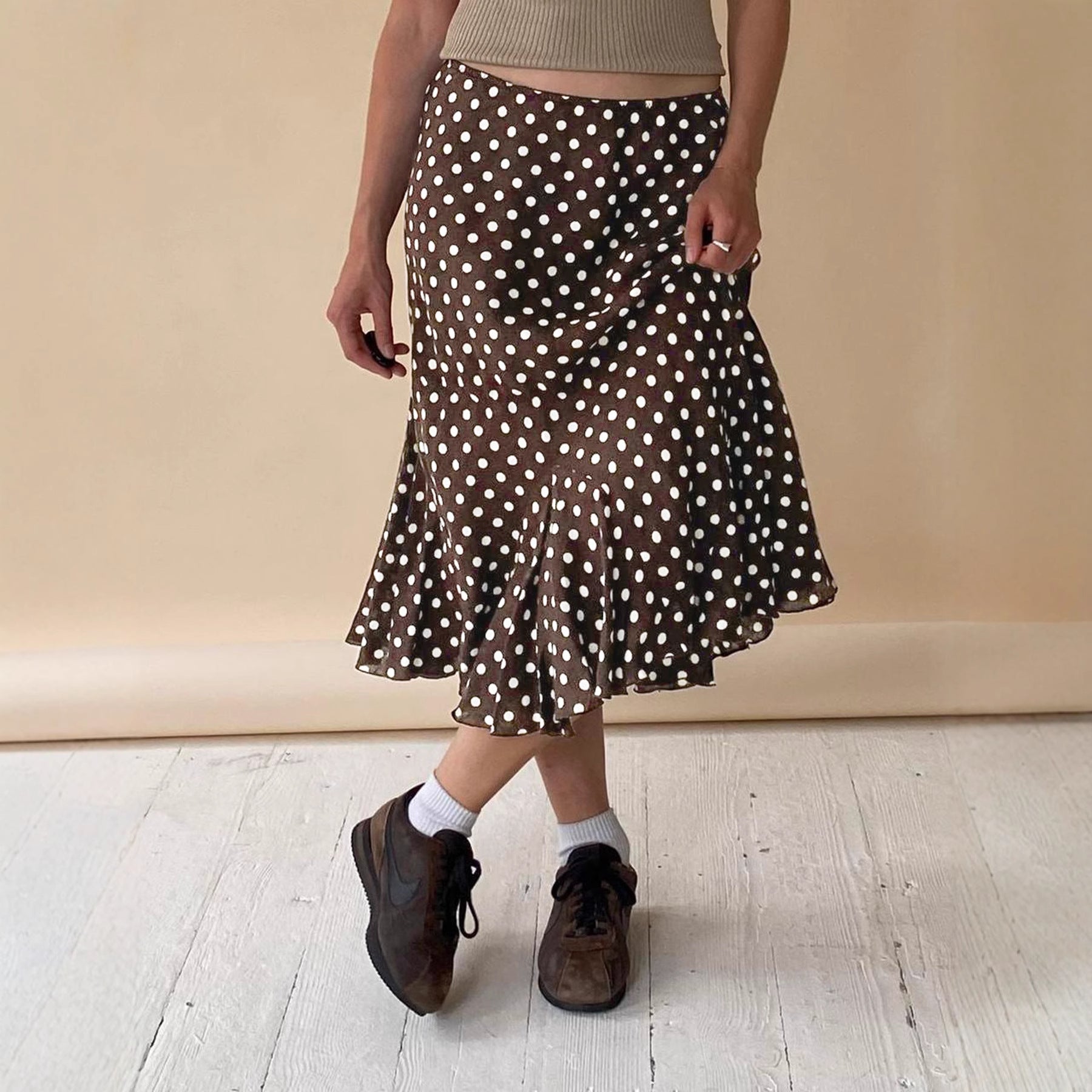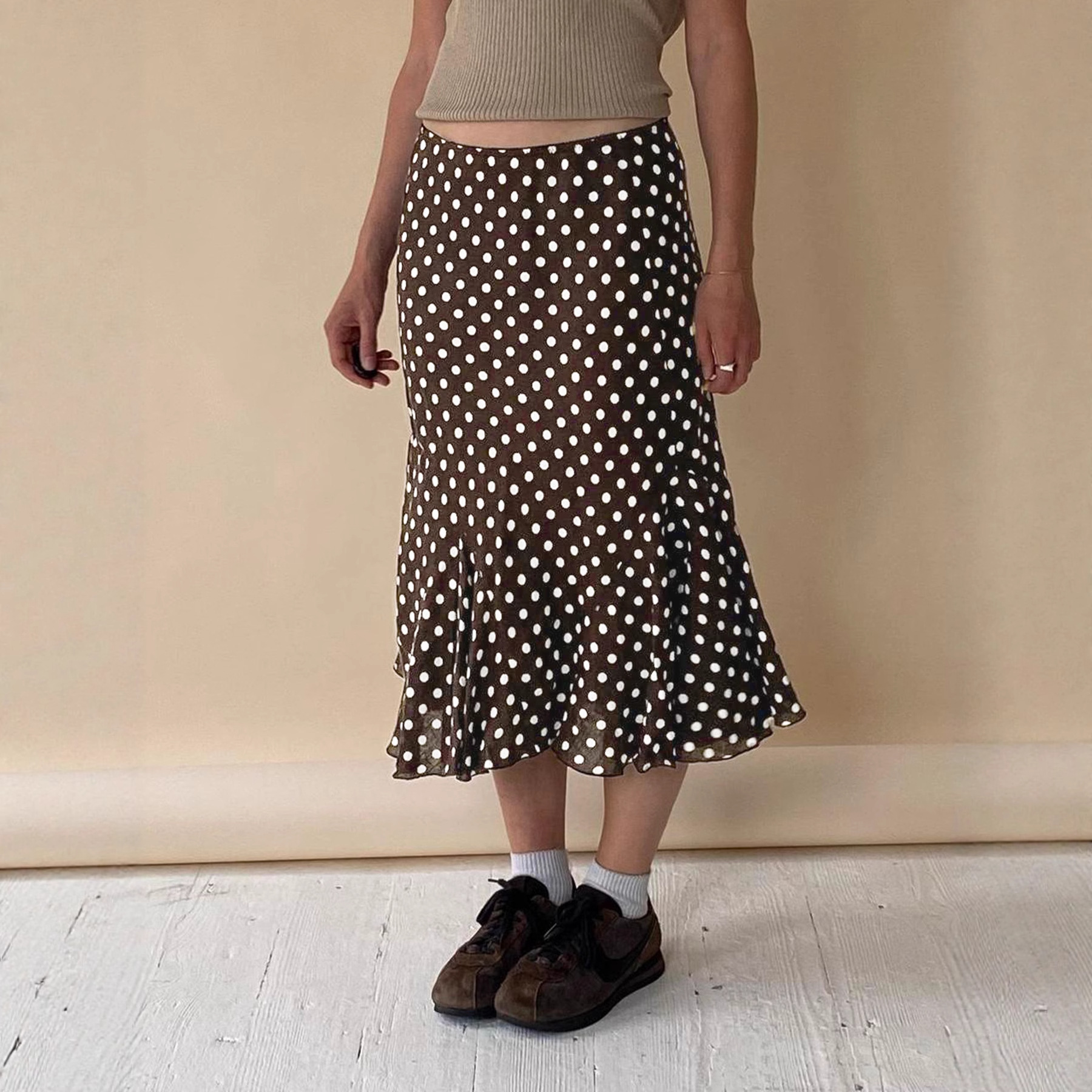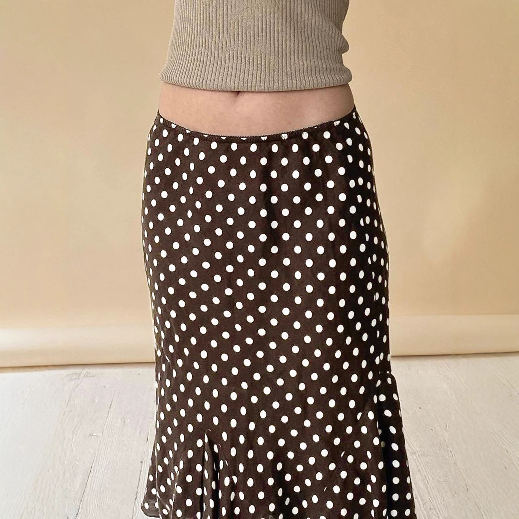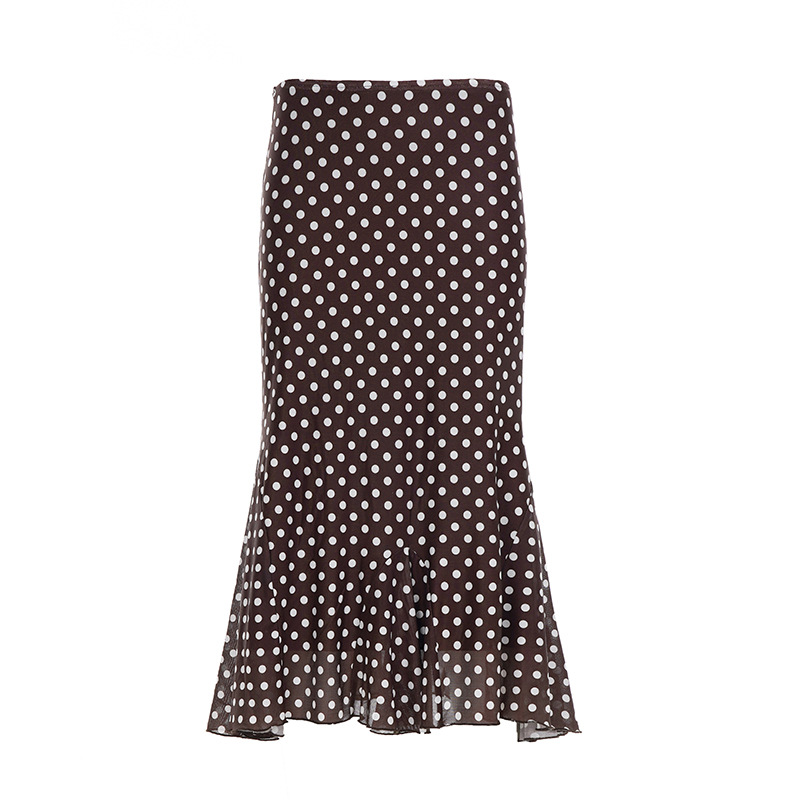 2025 Fashion Basic Wave Point Bump Low-Waisted Hottie Lotus Leaf Side Splicing Straight Half Skirt Long HZ1220