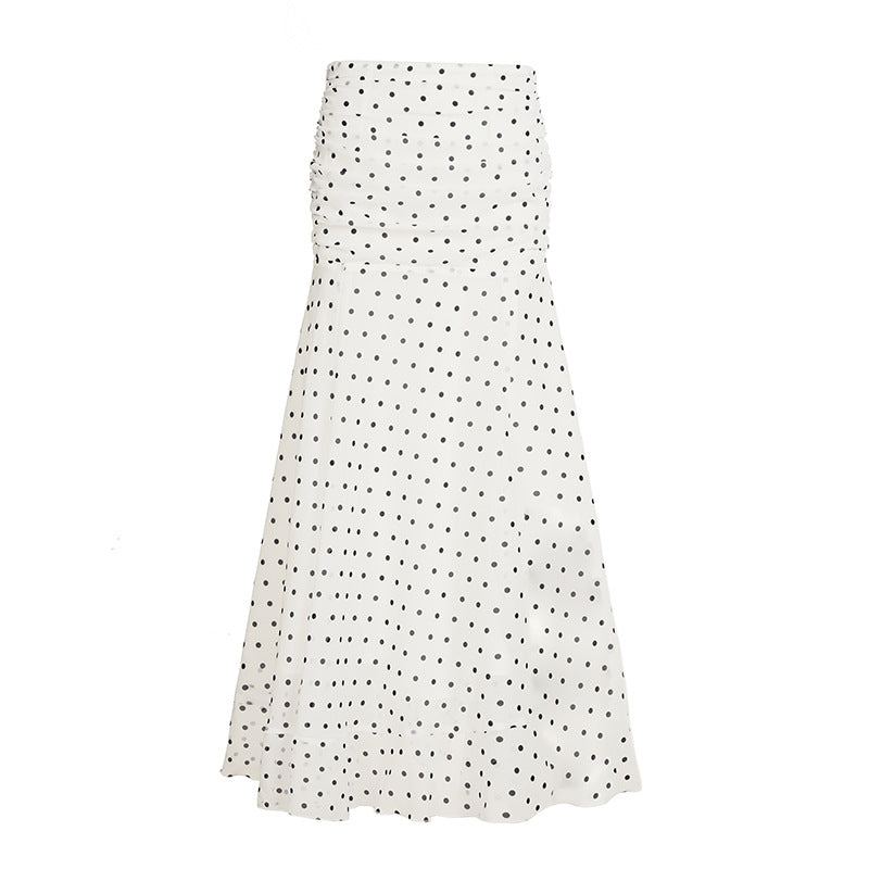French Pure-Want Girl Sexy High-Waist Wave Dot Print Slimming Skirt Picnyle Leaf Side A Word Fishtail Skirt HZ1220