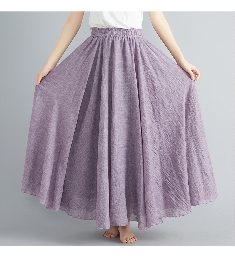 Mori Women's Literature And Art Large Cotton Tamples Skirt Tight Waist A-Shaped Skirt Long Solid National Style Skirt 24 Colors HZ1220