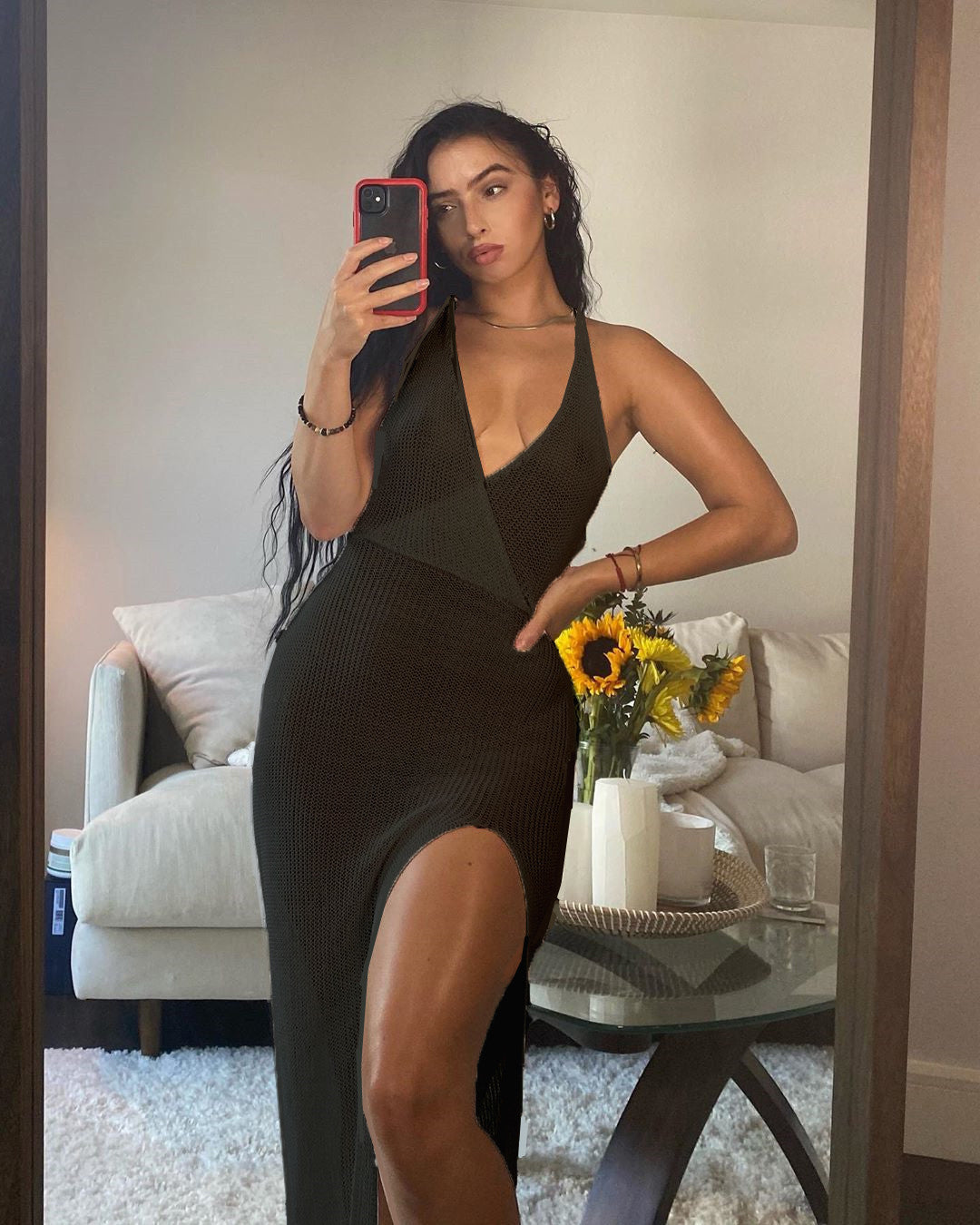 New Hollow Bikini Hooded Cross V-Neck-Dip T-Shirt With Perspective Hook-Flowered Beach Suspension Long Skirt HZ1208