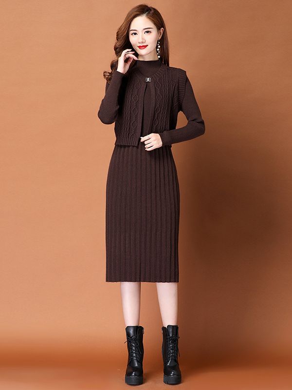 New Knitted Dress In Autumn And Winter 2025 Two Sets Of Women's Long Thin Temperament Inside The Bottom Sweater Skirt HZ1220