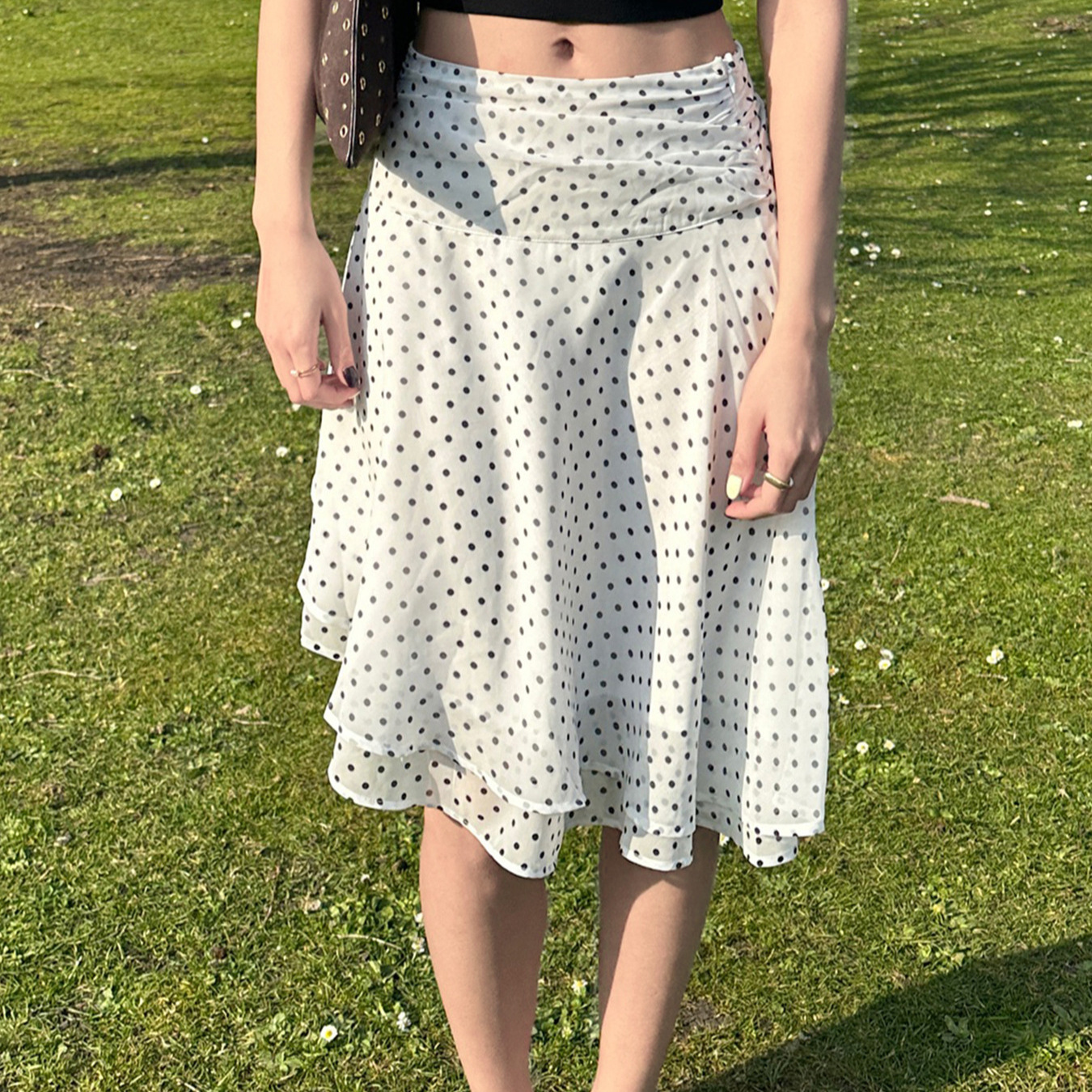 Temperament Light Ripe Wind Folds Thin Wave Point Bump Color Double Mesh Splicing Medium Long A-Word Half-Body Skirt New HZ1220