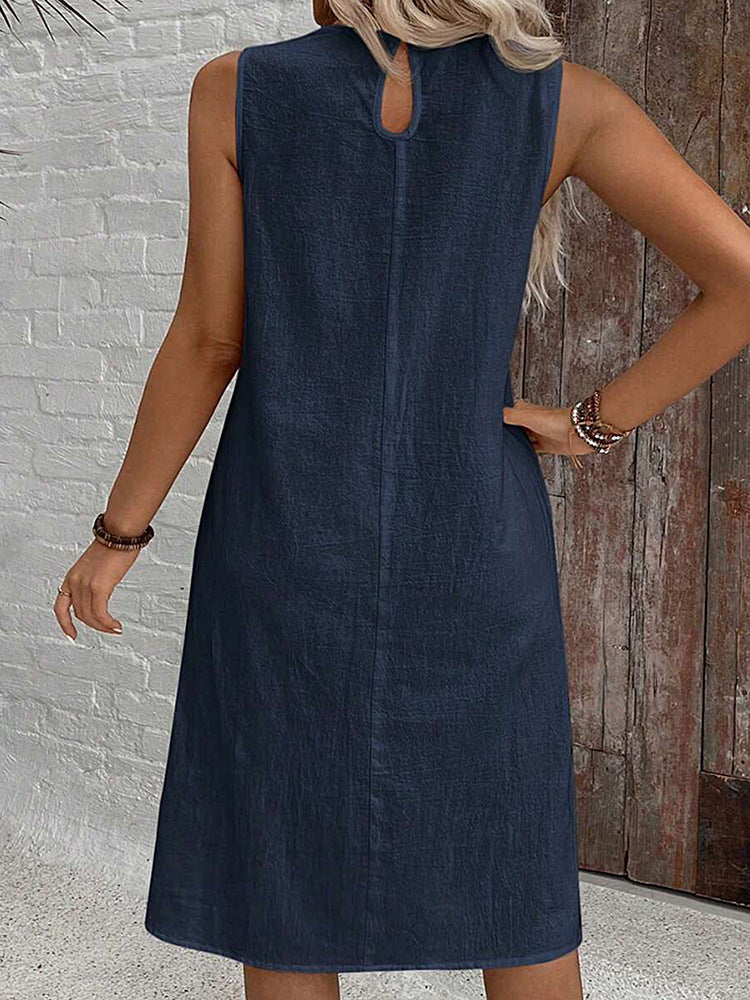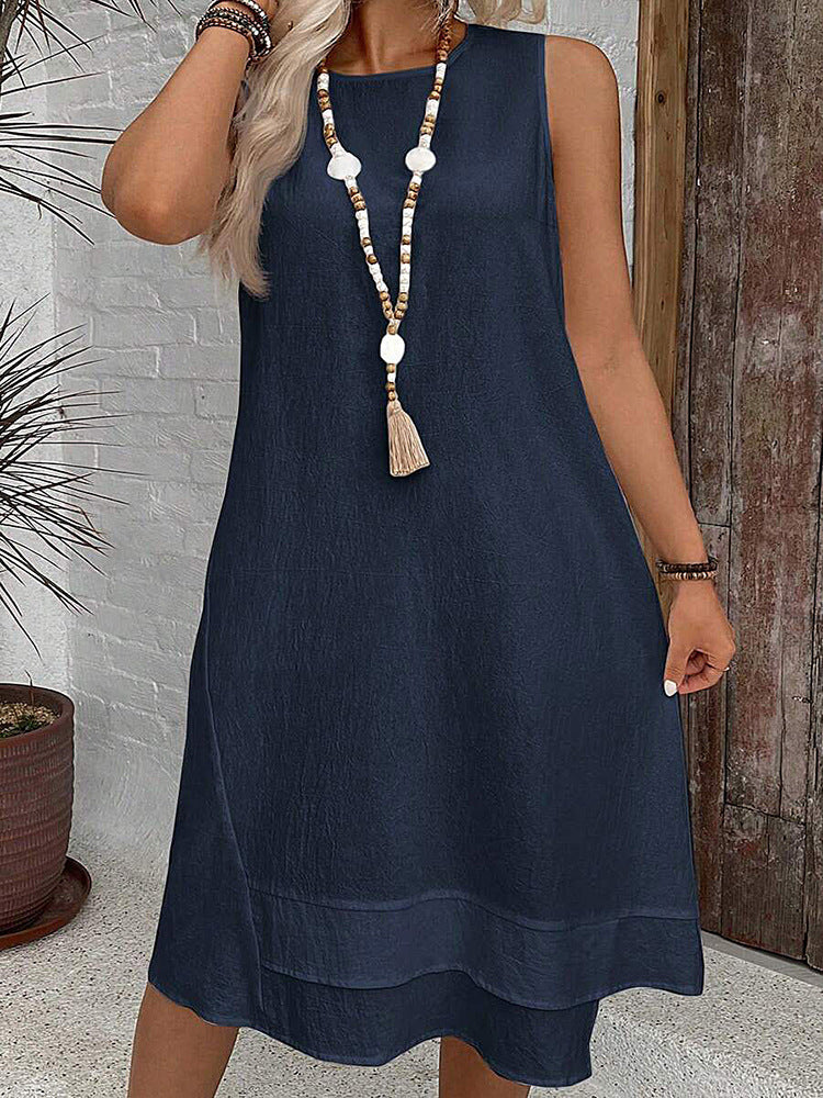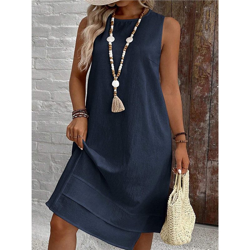 Women's Dress 2025 New Dress Round Collar Solid Sleeveless Summer Large-Size Casual Elegant Women's Skirt HZ1208