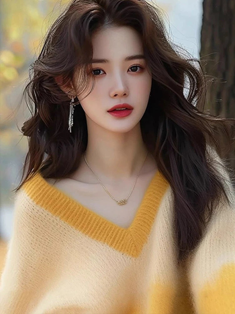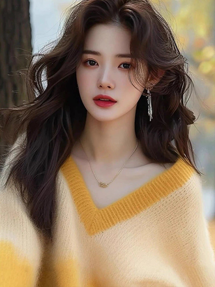 C¨¦t-In-Mem¨¦ V-Neck Gradient Knitted Jersey Woman 2025 New European Top Temperament Loose Soft Sweater HZ1208