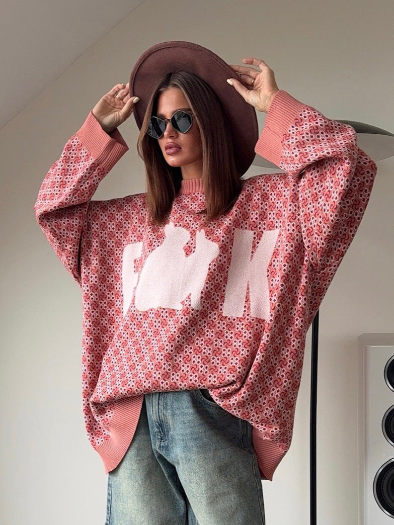Fashion Trend Design Knitted Bunny Sweater Spring And Autumn Lazy Wind Loose Leisure Women HZ1208