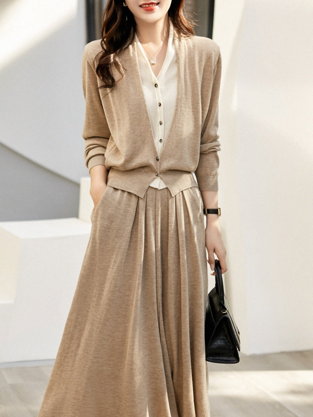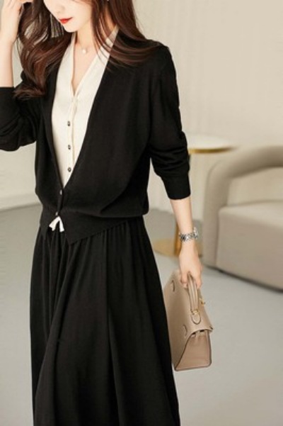 2025 Autumn Suit Hit Fake Two V-Neck Knitted Cardigan / Actually Tight Waist Half-Dressed Woman HZ1220