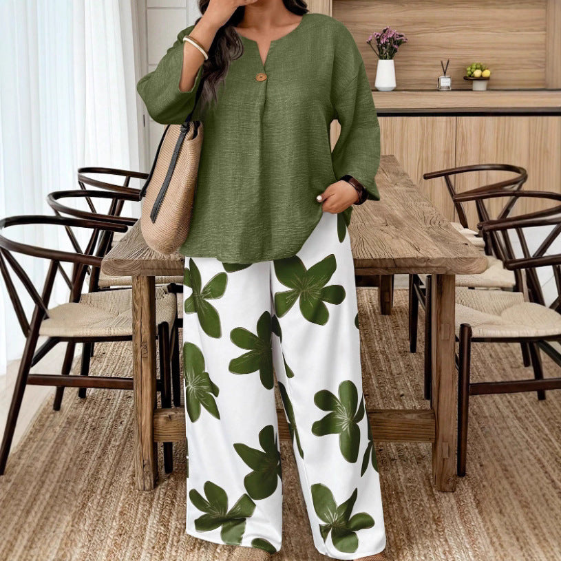 2025 Hot New Print Leisure Printing Wide Legs Fashion Beach Women's Pants HZ1208