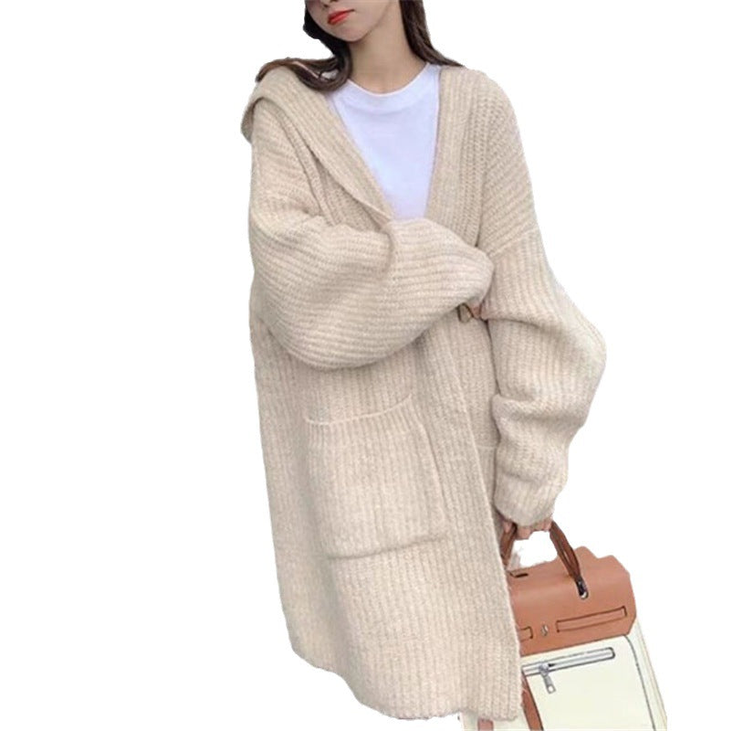 2025 Korean Version Of The Long Lazy Outside The Hooded Sweater Coat Women's Autumn And Winter Large Pocket Loose Knitted Open Shirt HZ1220