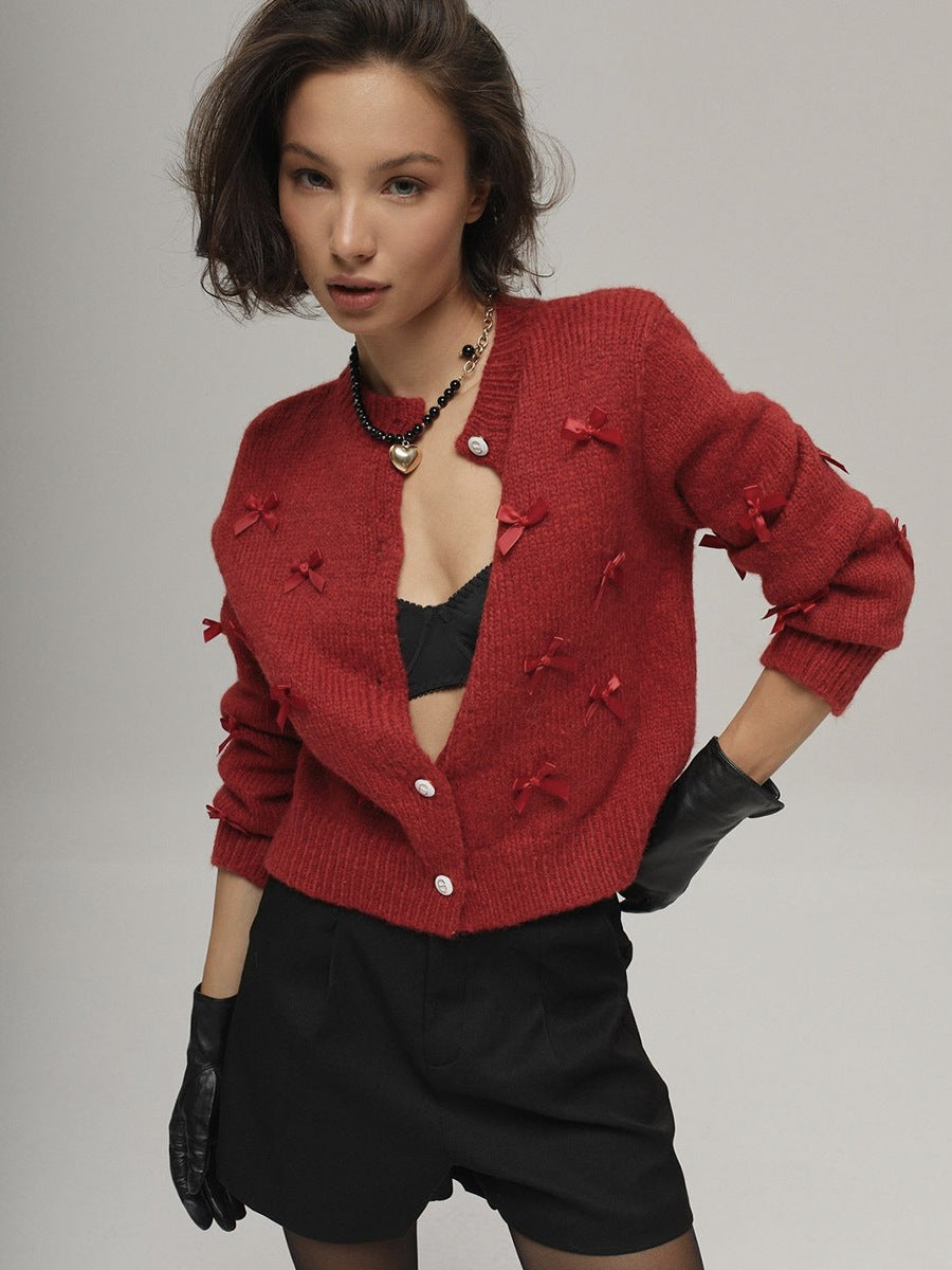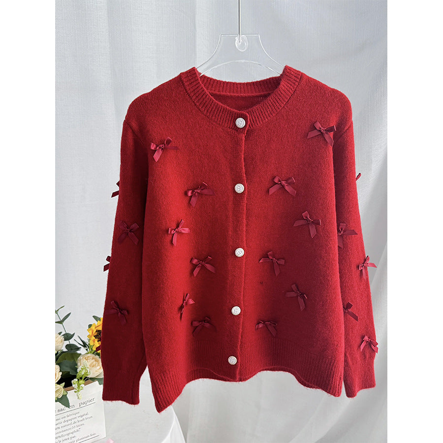 2025 New Heavy Industry Three-Dimensional Bow Atmosphere Sweater Women Autumn And Winter Design Sense Long-Sleeved Sweater Cardigans HZ1208