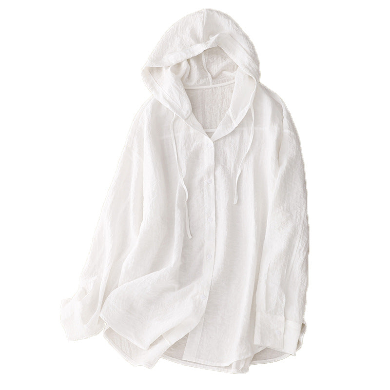 2025 New Hooded Sunscreen Long-Sleeved Air-Conditioned Shirt Jacket Thin Loose Leisure Beach Top Woman HZ1220