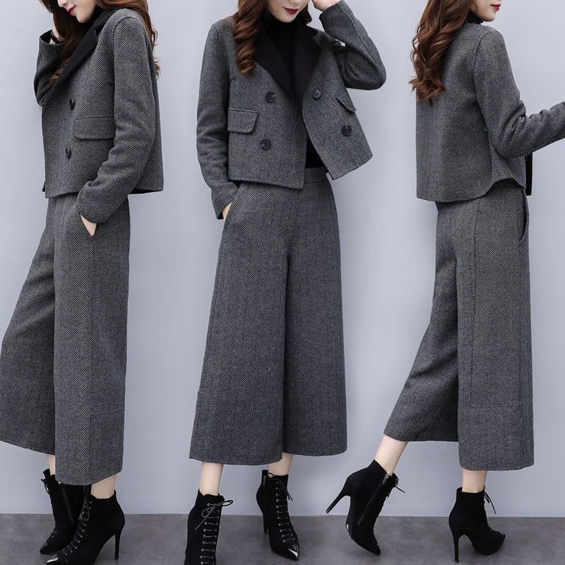 2025 New Women's Clothing Autumn And Winter Two Sets Of Trousers With Trousers With Tyribs, Coat Broad Leg Trousers Casual Fashion Suit Women's Trend HZ1220