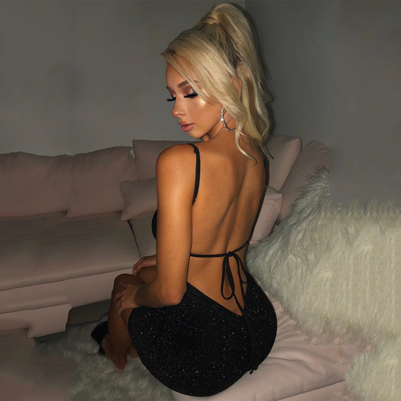2025 Spring And Summer New Sexy Suspension Ribbon Ribbon Ruffed Dress HZ1220