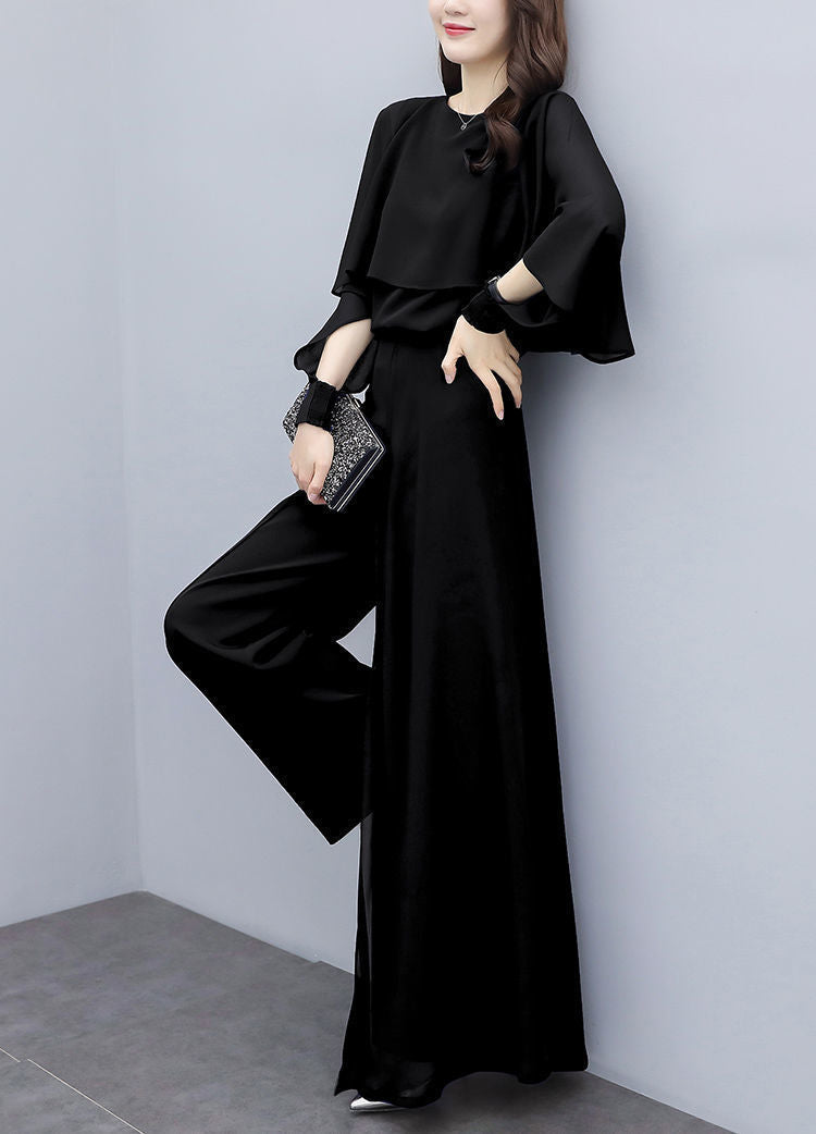 2025 Spring New Ocean Atmosphere Large-Size Chiffon Two Sets Of Pants Fashion Age-Skinny Broad Leg Pants Suit Women HZ1220