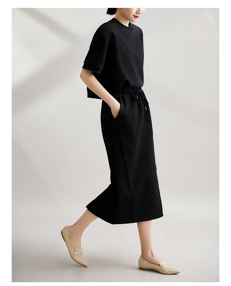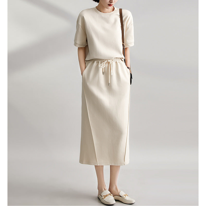 2025 Summer New Fashion Sports Casual Lazy Set Soft Short-Sleeved Top + Open Skirt Suit HZ1220