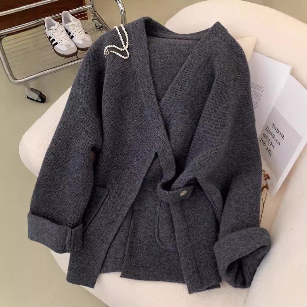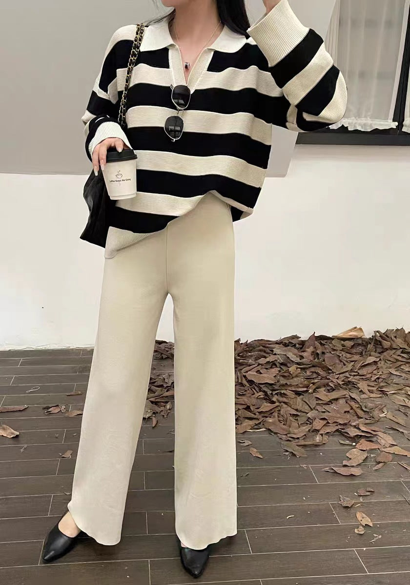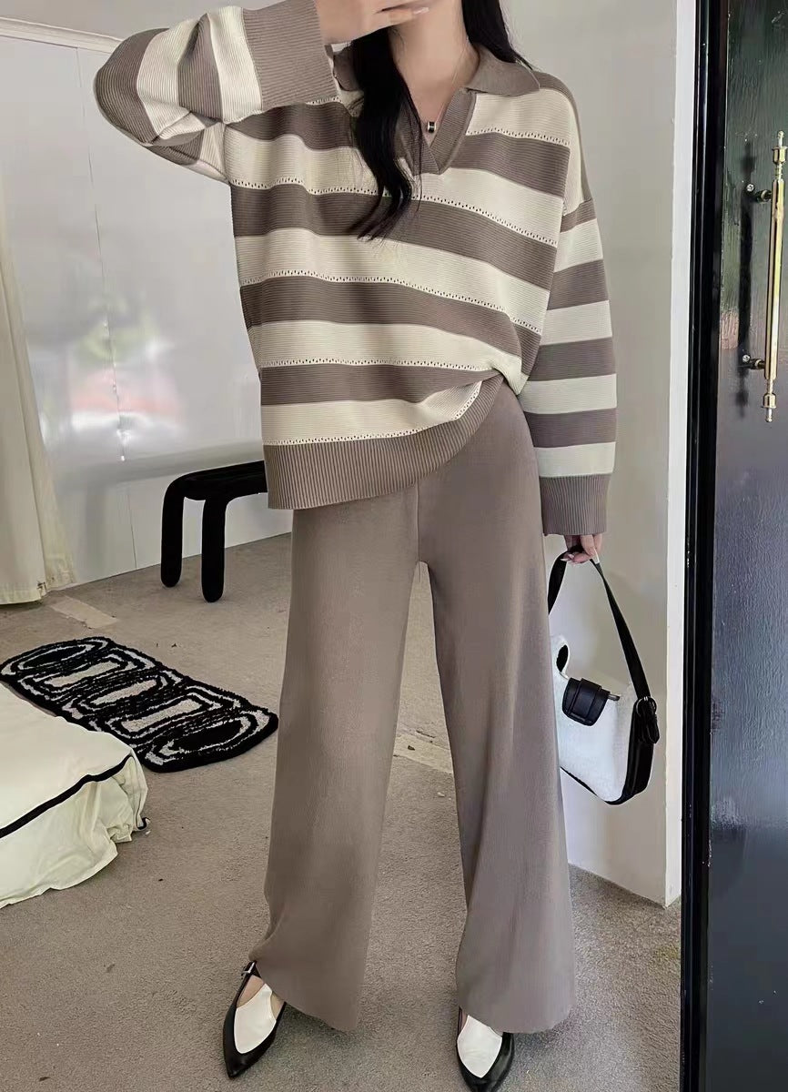 2025 Vintage Lazy Wind High-End Softy Loose Stripe Collar Fashion Knitting Suit Woman HZ1220