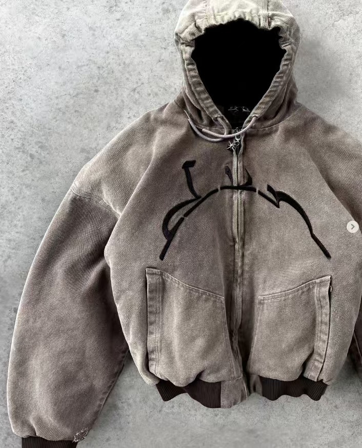 2025 Zippered Shirt Net Red Hooded Cardigan Small Clock Letter New Printed Coat HZ1208