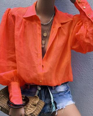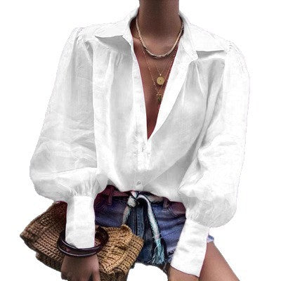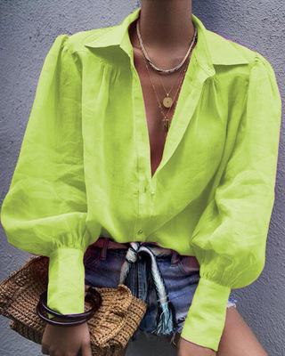 2025Wish New Loose Long-Sleeved Suit Collar Shirt Lady Top HZ1220