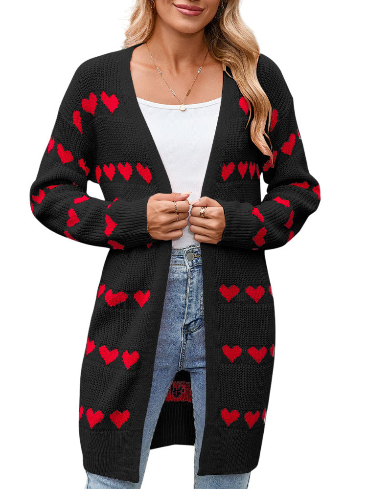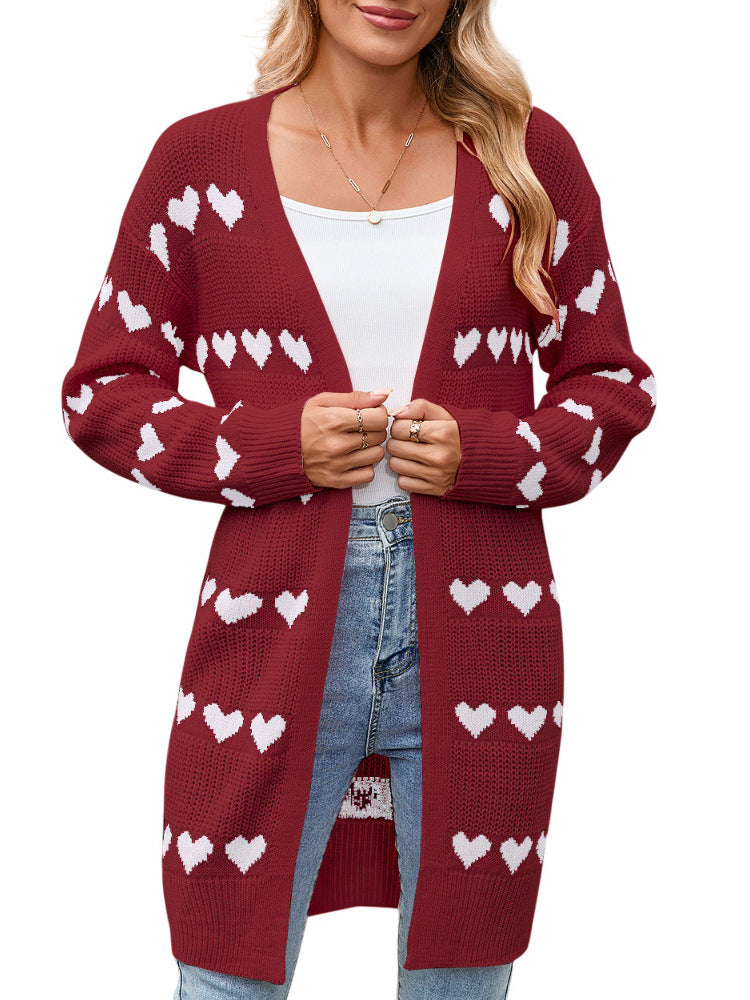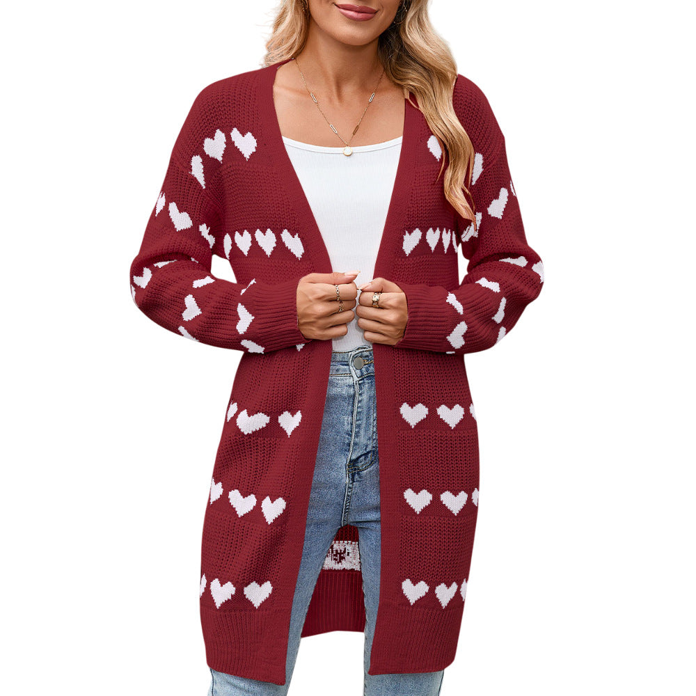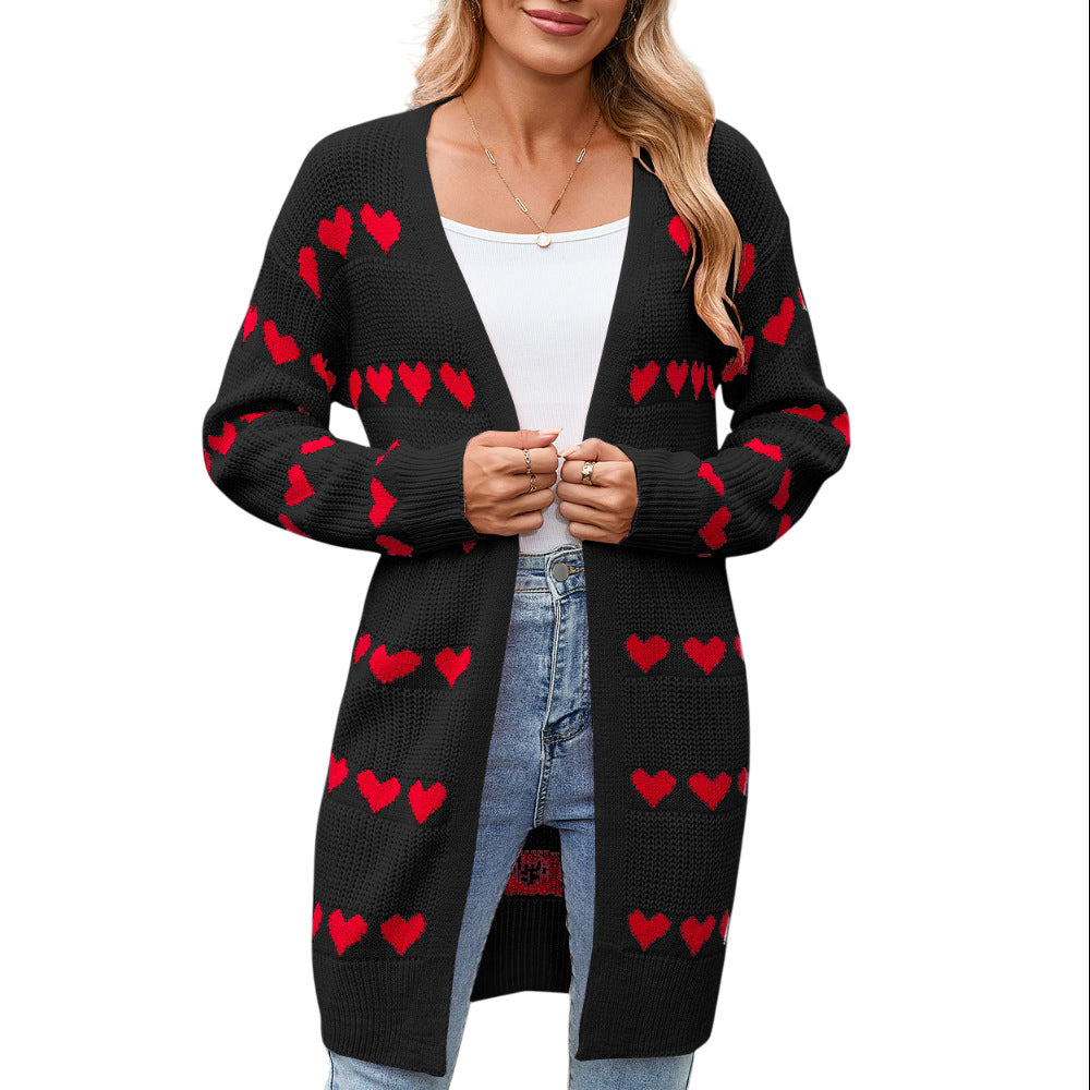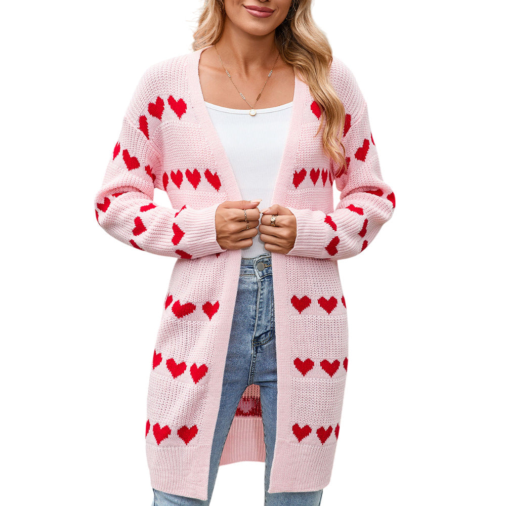 Autumn And Winter New Valentine's Day V Word Love Lasce Knitted Cardigan Coat Sweater Woman HZ1208