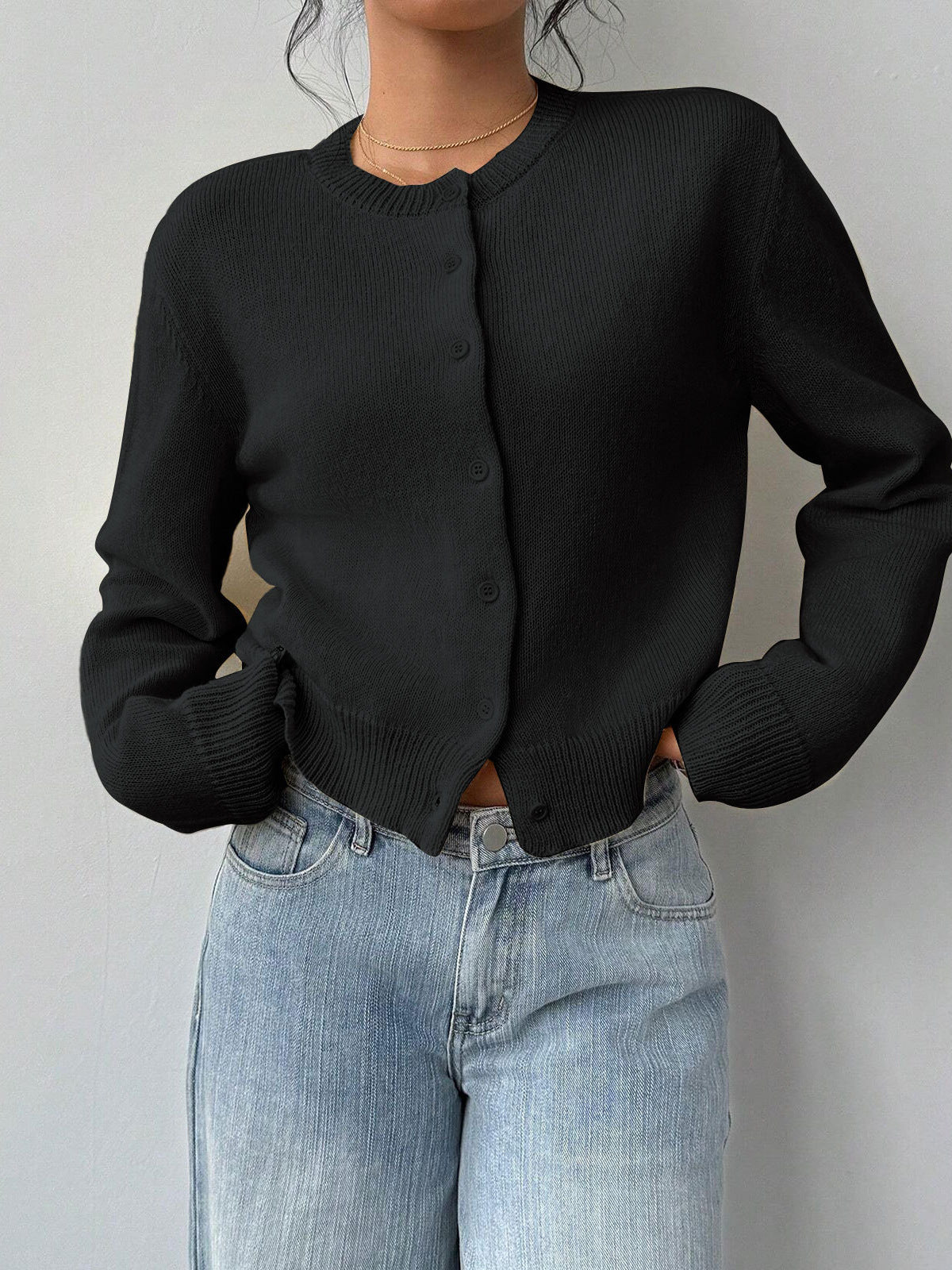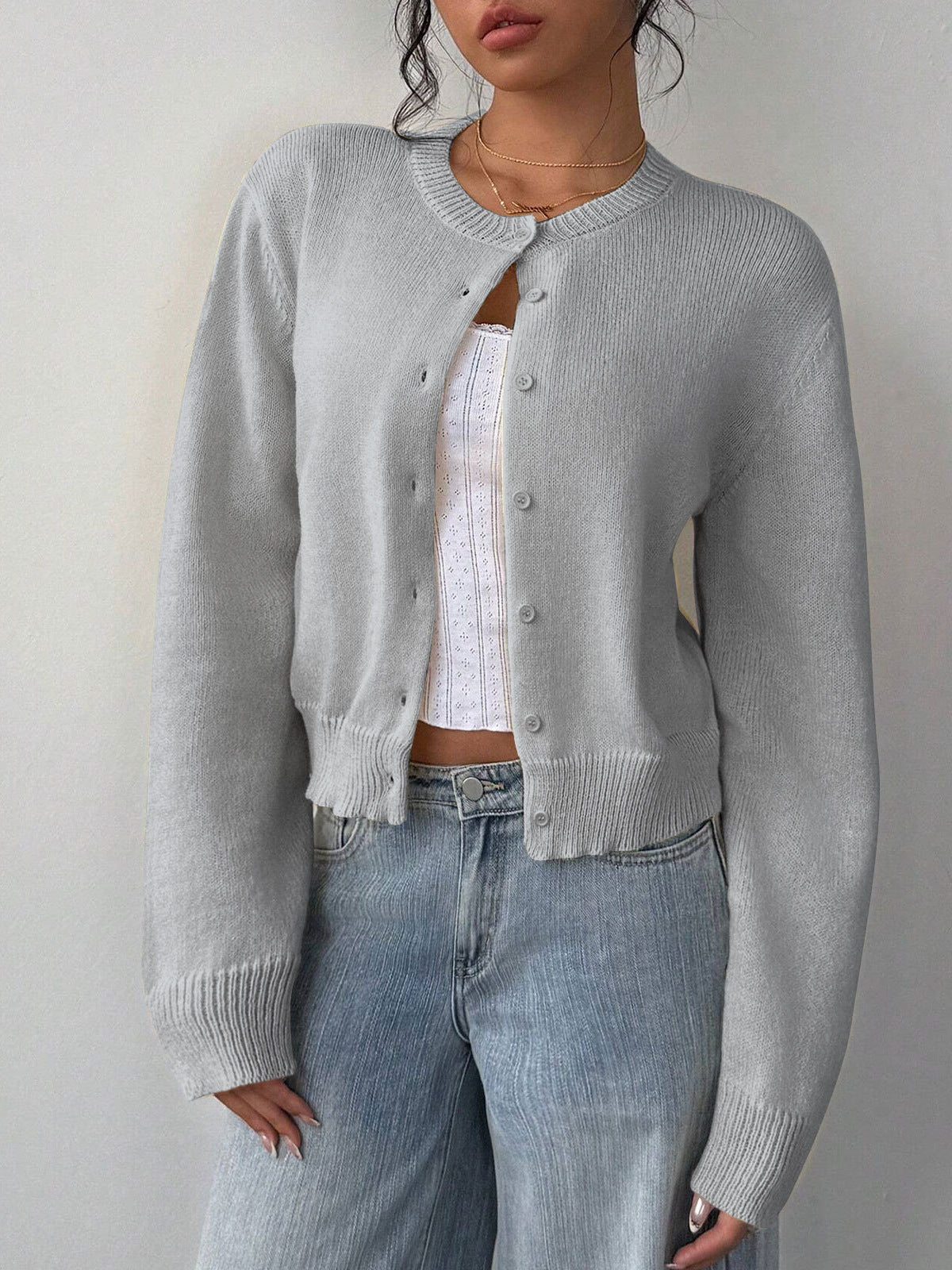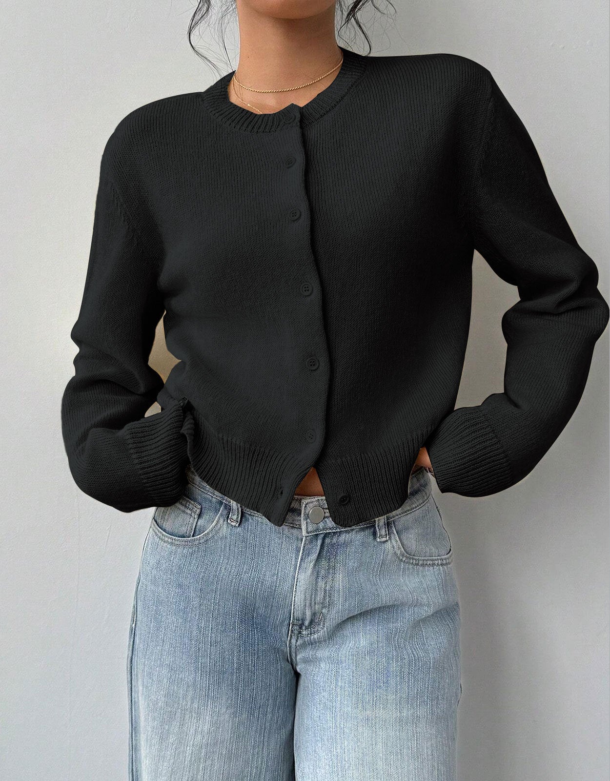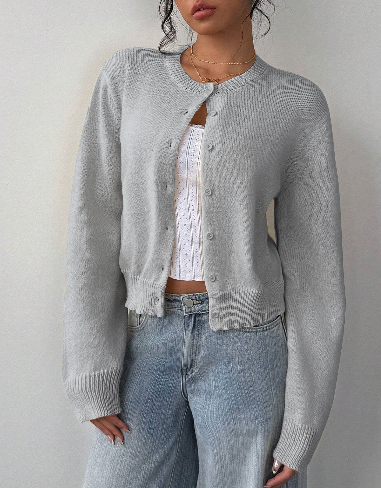 Autumn And Winter Sweater Women's Fashion Thin Round-Neck Long Sleeve Button Short Loose Cardigan Top Coat HZ1208