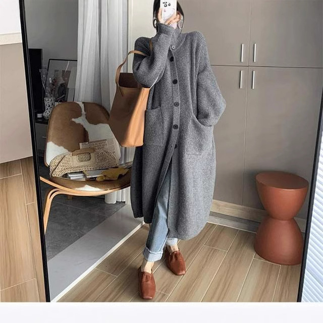 Autumn And Winter Women's Clothing New Design Feeling Thick Loose Temperament Lazy Coat Long Sweater Cardigan Woman HZ1220