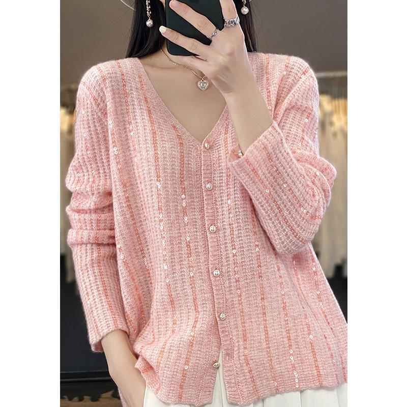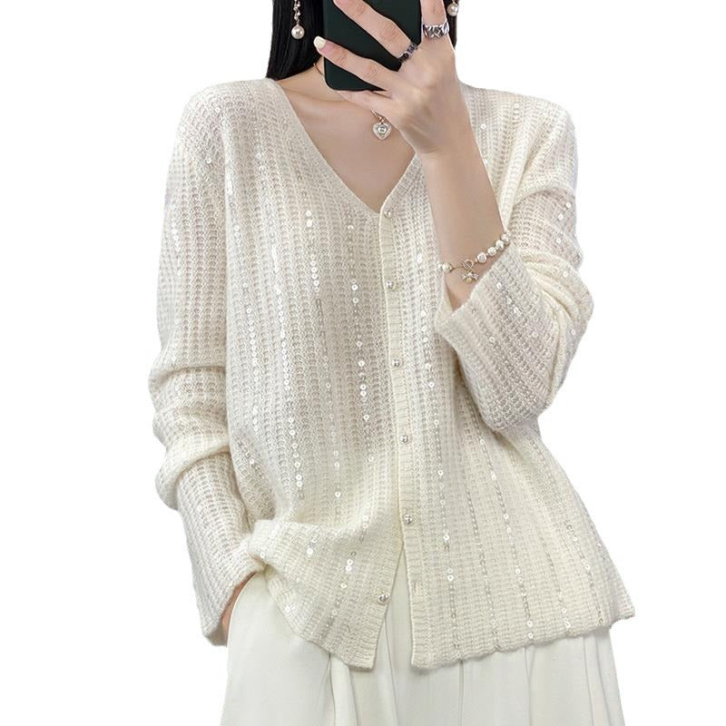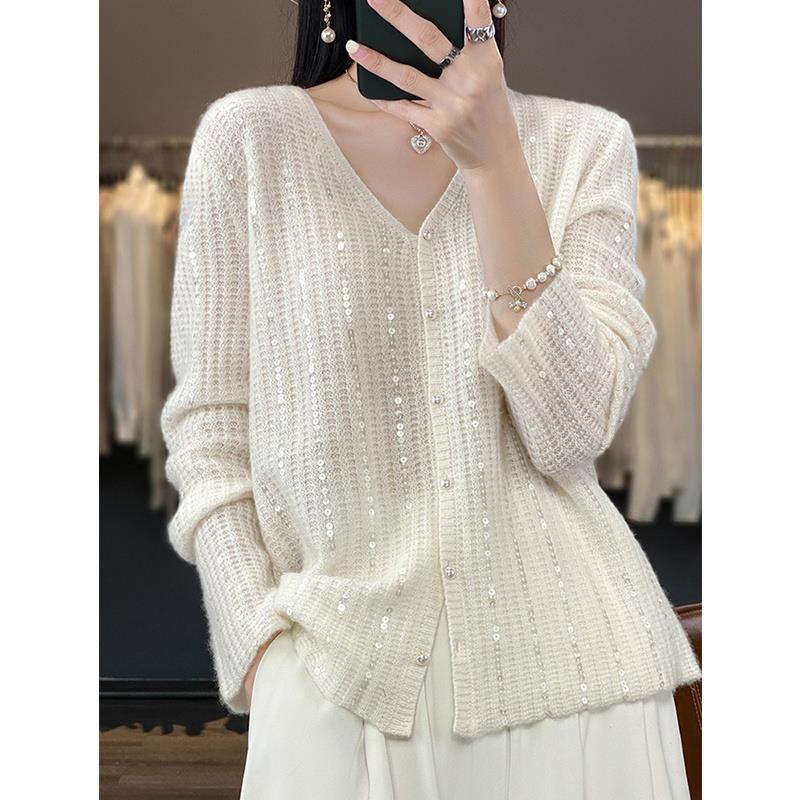 Autumn/Winter 2025 New Cardigan Women's V-Necked Squints Sweater Jacket Loose Pearl Buckle Knitting Top HZ1220