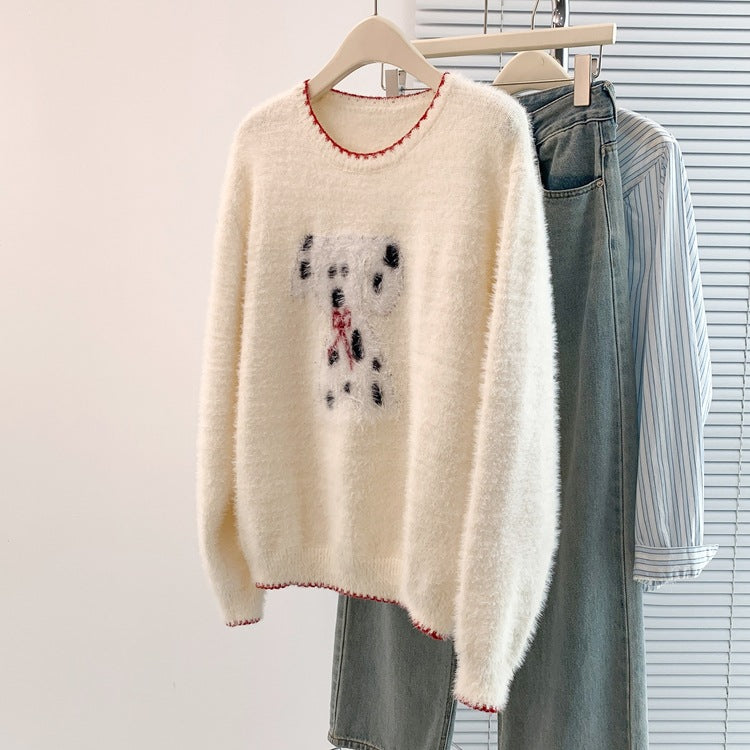 Black Spotted Dog Watery Wool Sweater Women Winter Soft Languid Horse Hair Long Knitted Blouse Autumn And Winter HZ1208