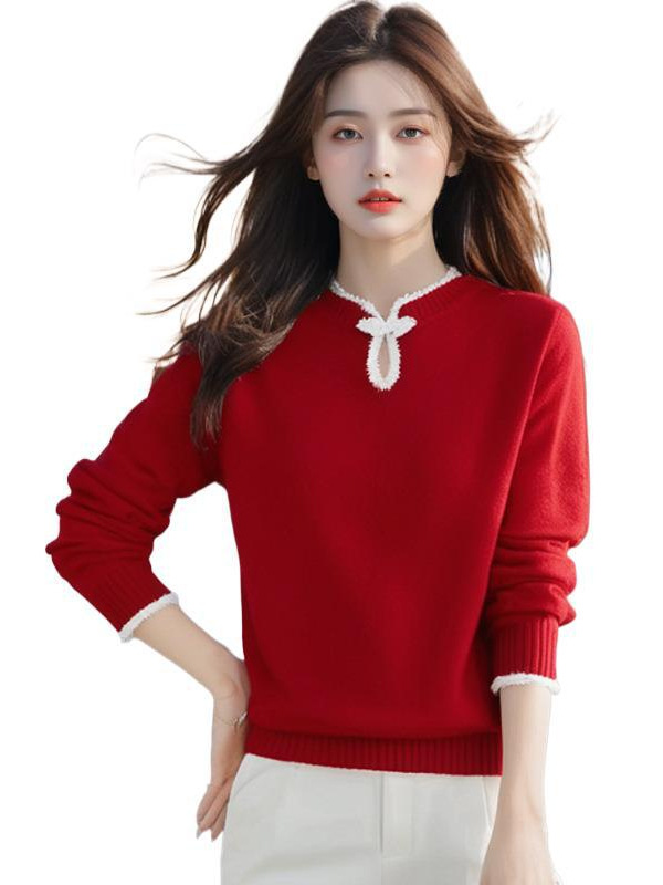 Chinese Women's Clothing Chinese Style Bottom Shirt Women 2025 New Autumn And Winter Dragon Year Life Year Clothes Large Red Sweater HZ1208