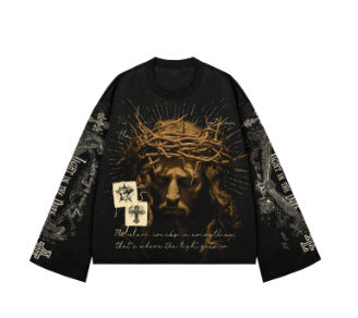 Cotton Long-Sleeved Blouse Loose Statue Of Liberty Chao Street Youth Wind HZ1208