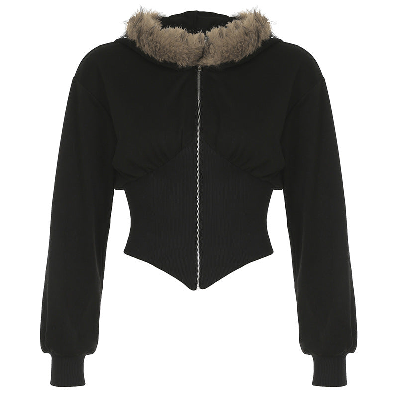Dark Wind Hair Stranding Zip Coat Hottie Autumn And Winter Slim Slim Irregular Top HZ1220