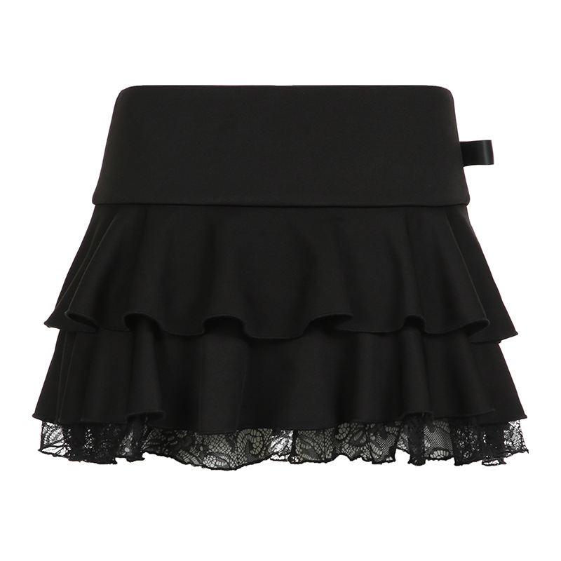 Diablo Bow Spliced Half-Dressed Girl 2025 Low-Waist Sexy A-Shaped Skirt Hottie INS New Short Skirt HZ1220