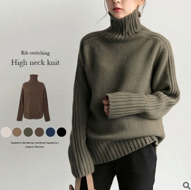 High-Necked Sweater Women Winter Korean Retro Loose Languid Languid Temperament Simple Thick Pit Strip Bottom Knitting Shirt HZ1220
