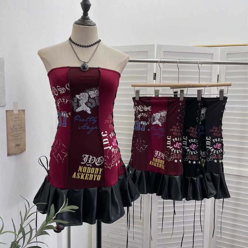 Hottie Sexy Tset Blouse Irregular Cowboy Splicing Mesh Yarn Tie With Short T-Shirt 6105 HZ1208