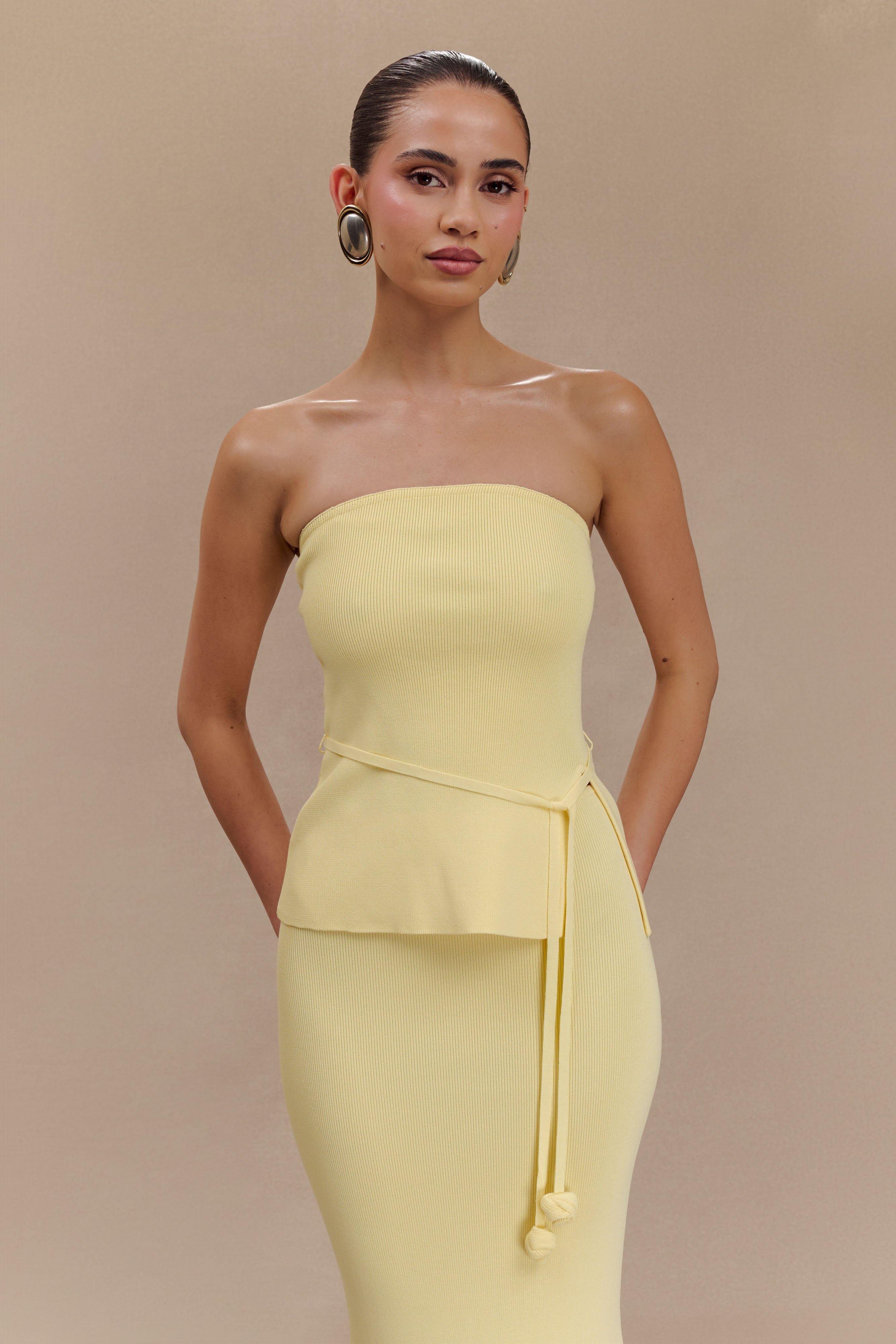 Keaton Strapless Rose Tie Knit Top - Lemon